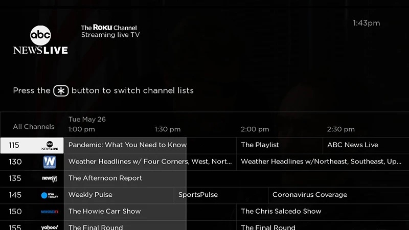 Live TV Channel Guide on The Roku Channel