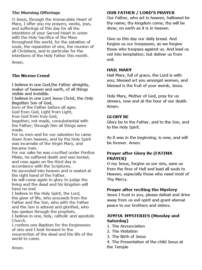 Prayers Of The Rosary Printable