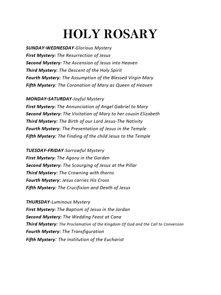 Rosary Prayer Printable Mysteries Of The Rosary