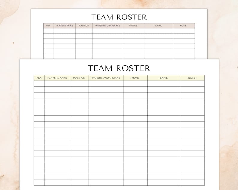 Team Roster Printable Editable Sports Roster Printable Soccer Team