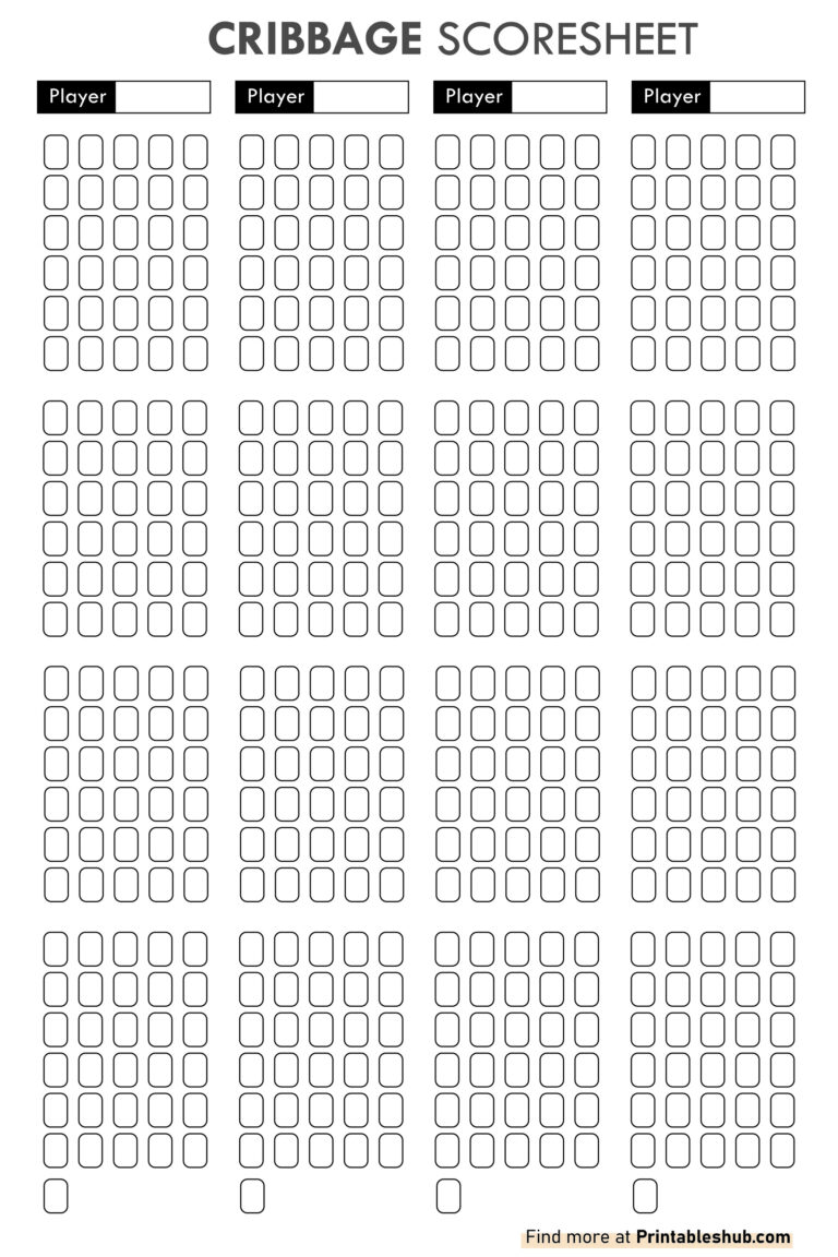 Printable Cribbage Scoresheets Printables Hub