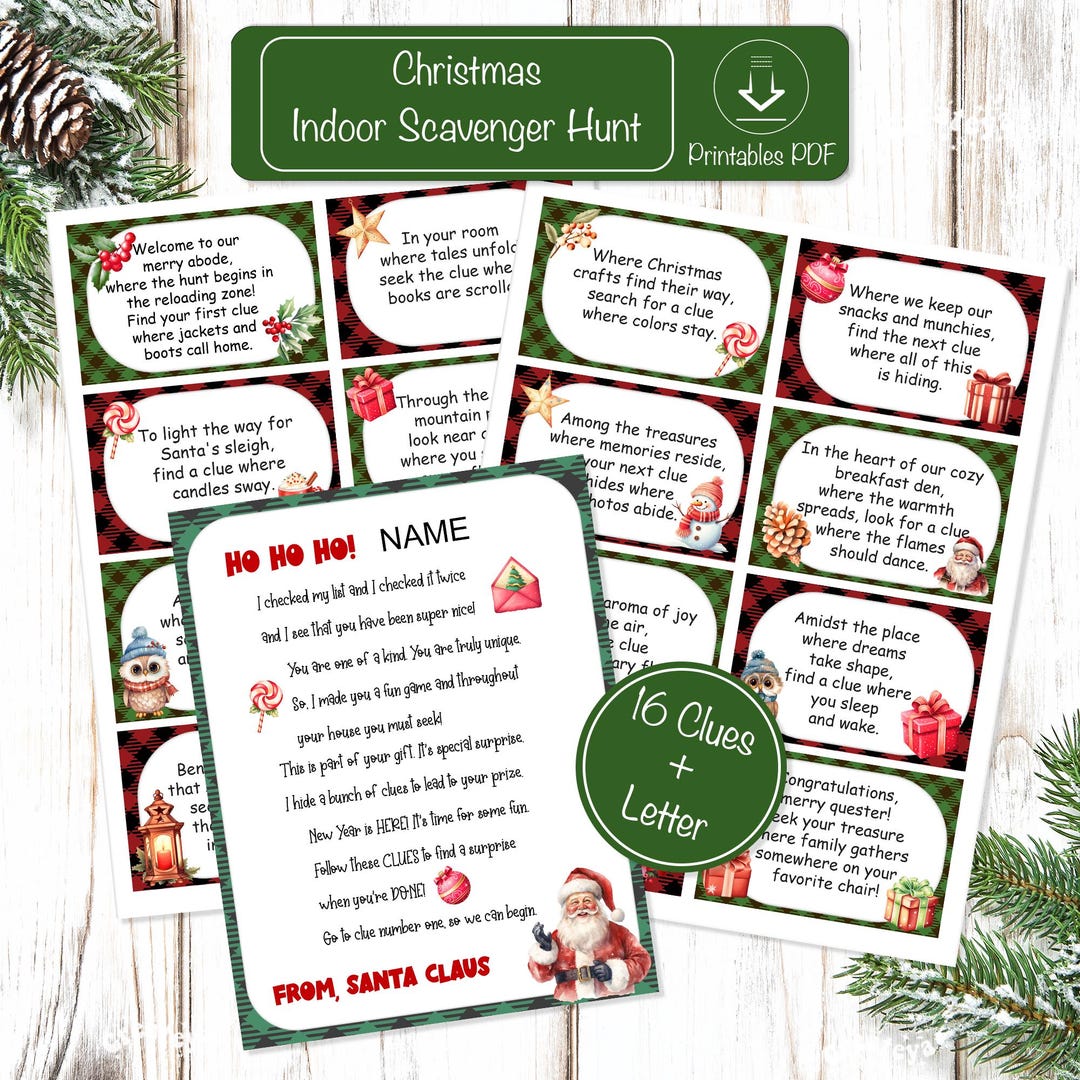 Best christmas scavenger hunt printable 18 unique clue cards Artofit