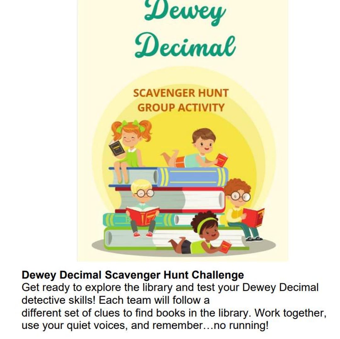Dewey Decimal Scavenger Hunt Challenge Library Activity Printable