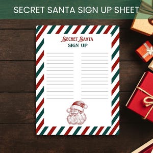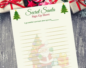 Secret Santa PRINTABLE Holiday Gift Exchange Form Sign up Sheet