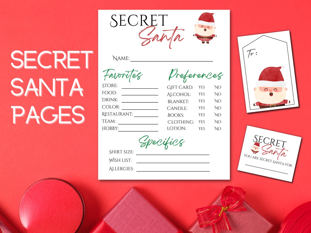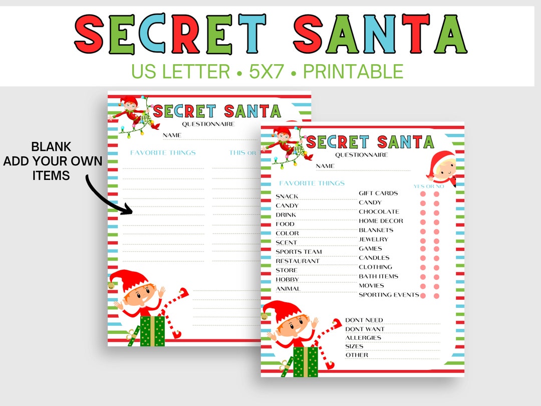 Secret Santa Questionnaire Printable Secret Santa Form Etsy