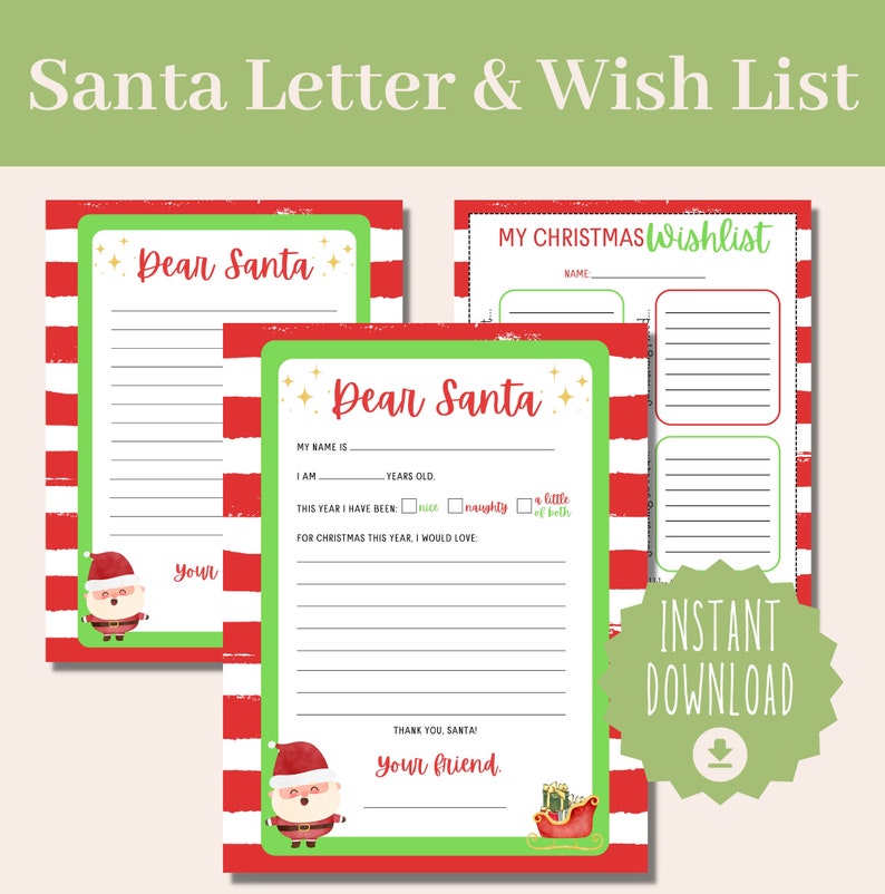 Dear Santa Letter Christmas Wish List Naughty or Nice Etsy