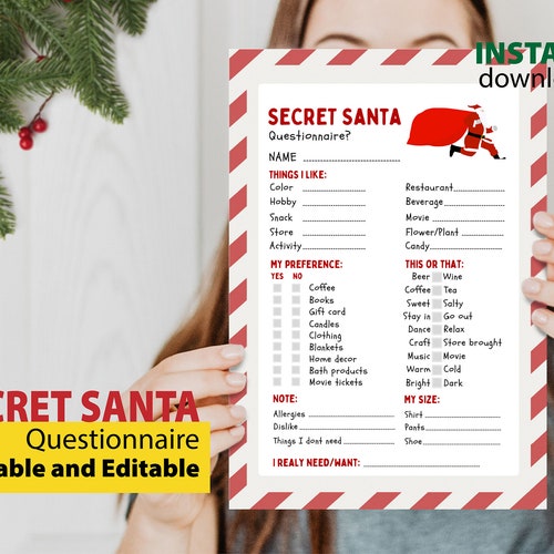 Secret Santa Questionnaire Printable for Christmas Gift Etsy Australia
