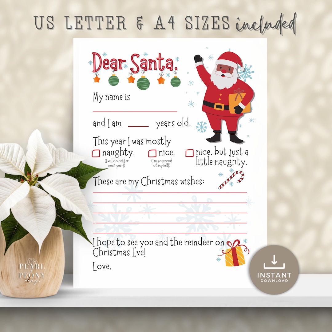 PRINTABLE Letter to Black Santa Kids Christmas Wish List Holiday Gift