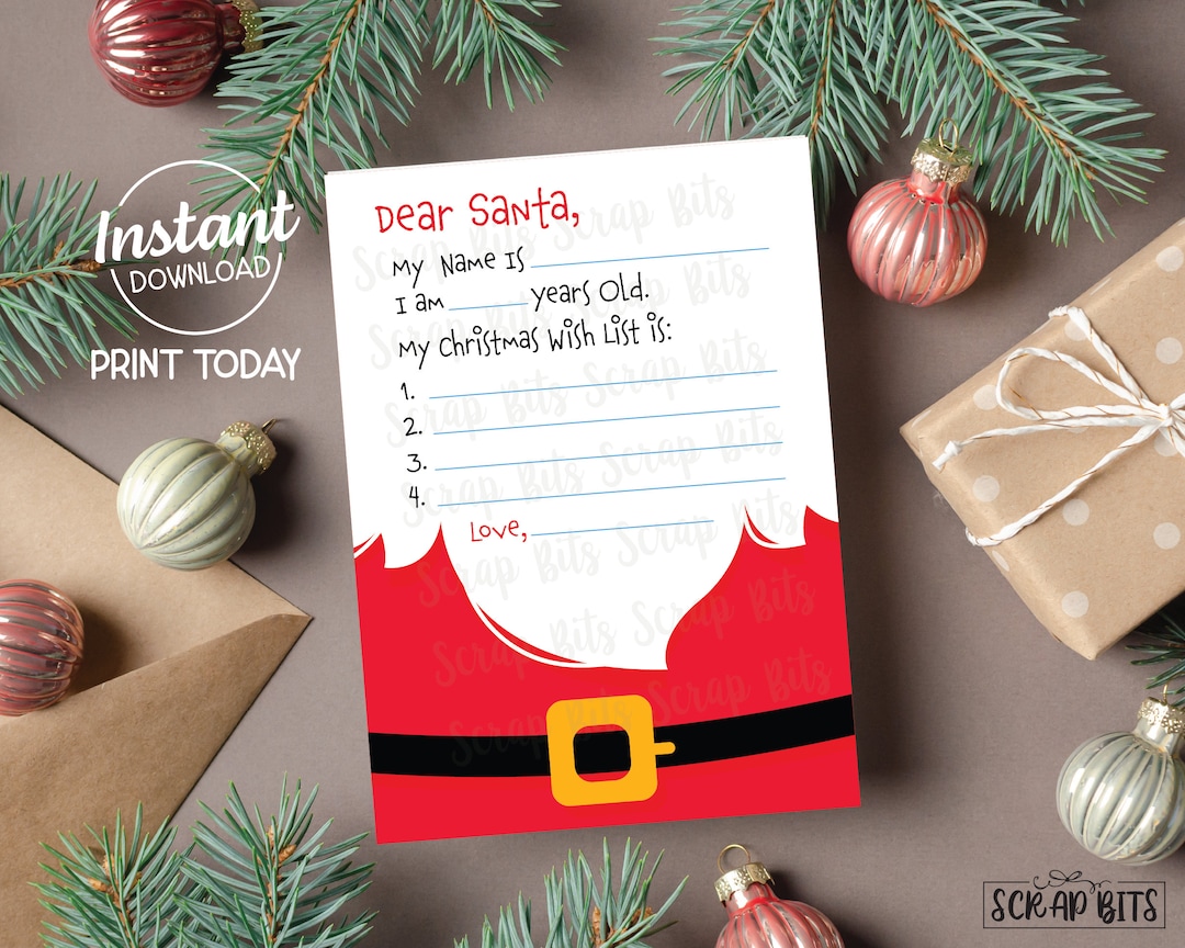 Dear Santa Letter Christmas Wish List Letter to Santa Beard Belt