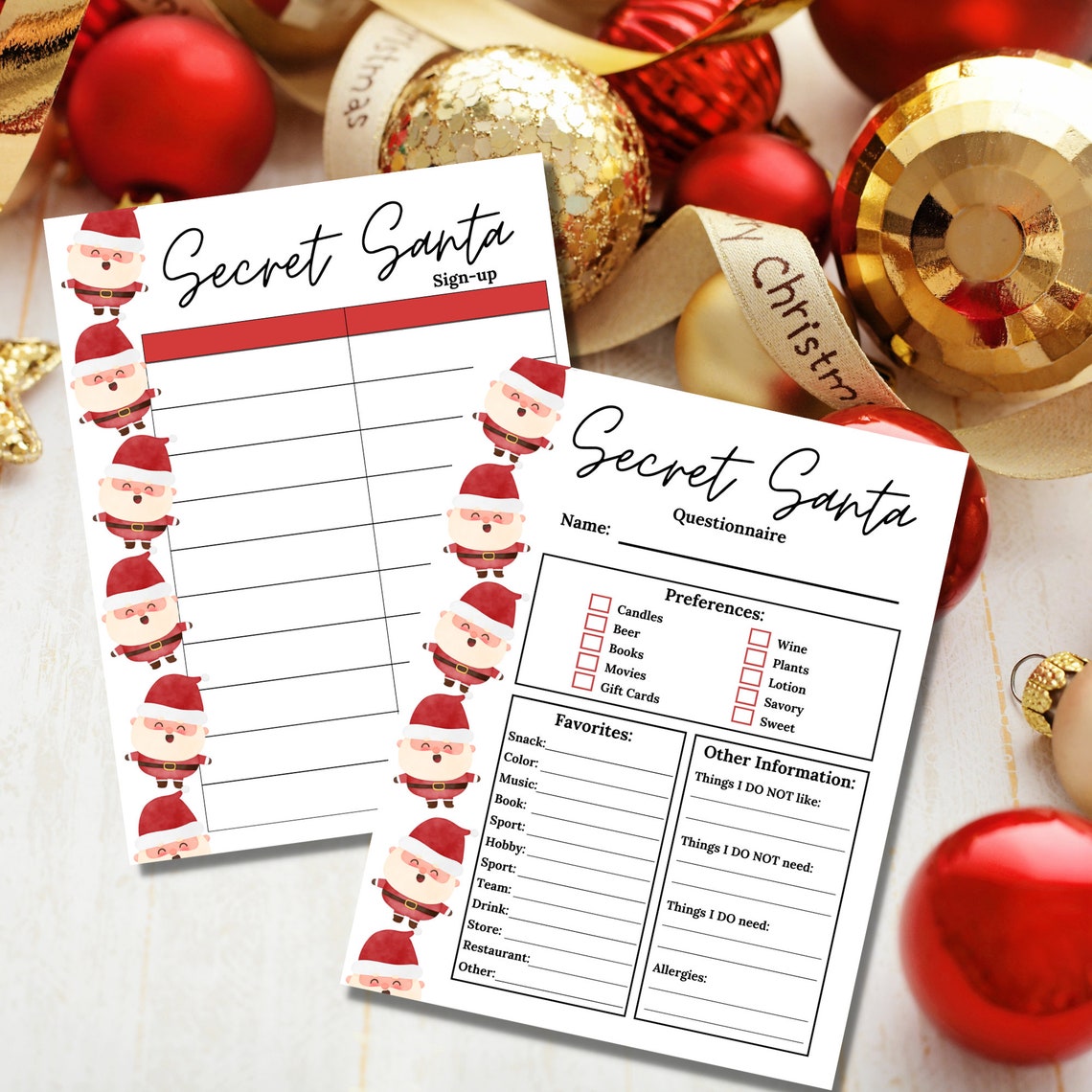 Secret Santa Sign up Sheet Secret Santa Questionnaire Secret Santa