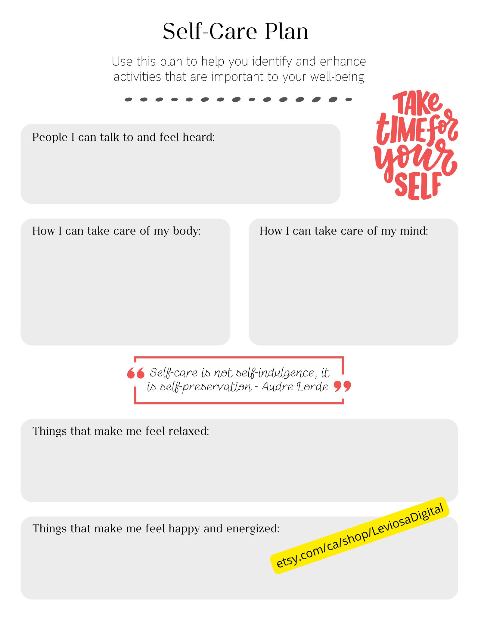 Printable Self Care Plan Worksheet Pdf easyworksheetprint com