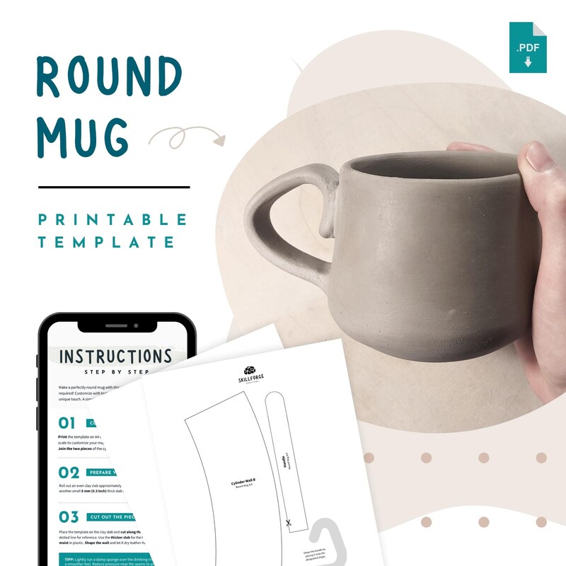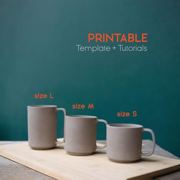 Handmade Wide Mug Pottery Template Printable Clay Cup Pattern Slab