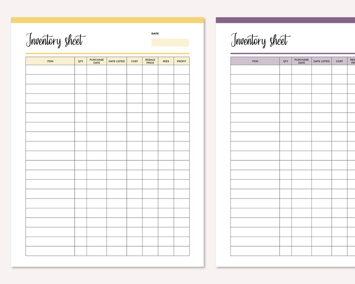 Reseller Inventory Sheet Printable Small Business Inventory Etsy