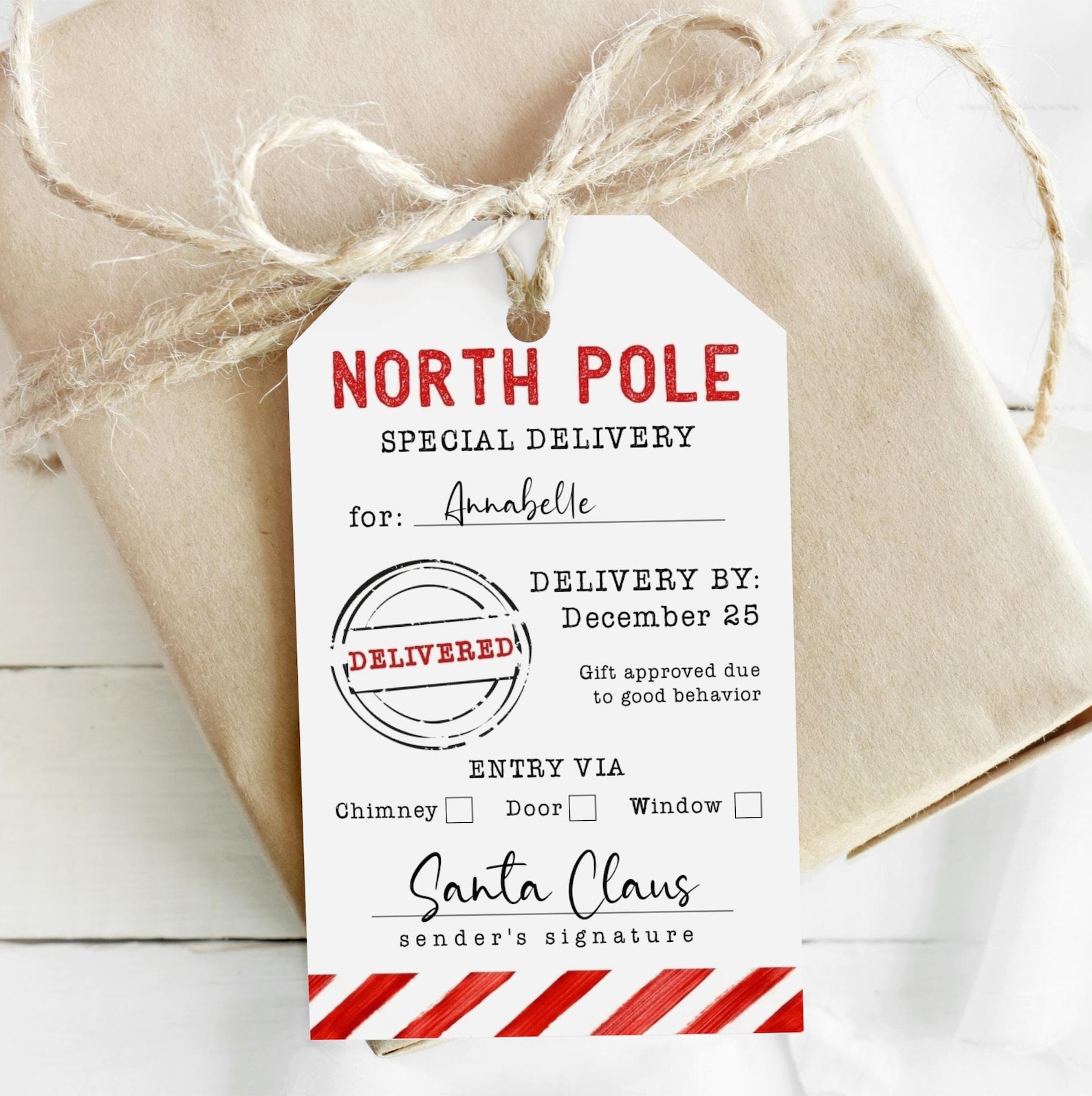 Printable North Pole Special Delivery Tag Template Editable Etsy