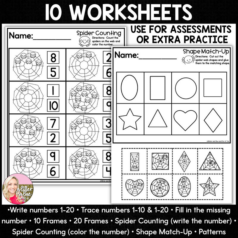 Spider Counting Worksheet 1 10 (Printable PDF For Kindergarten