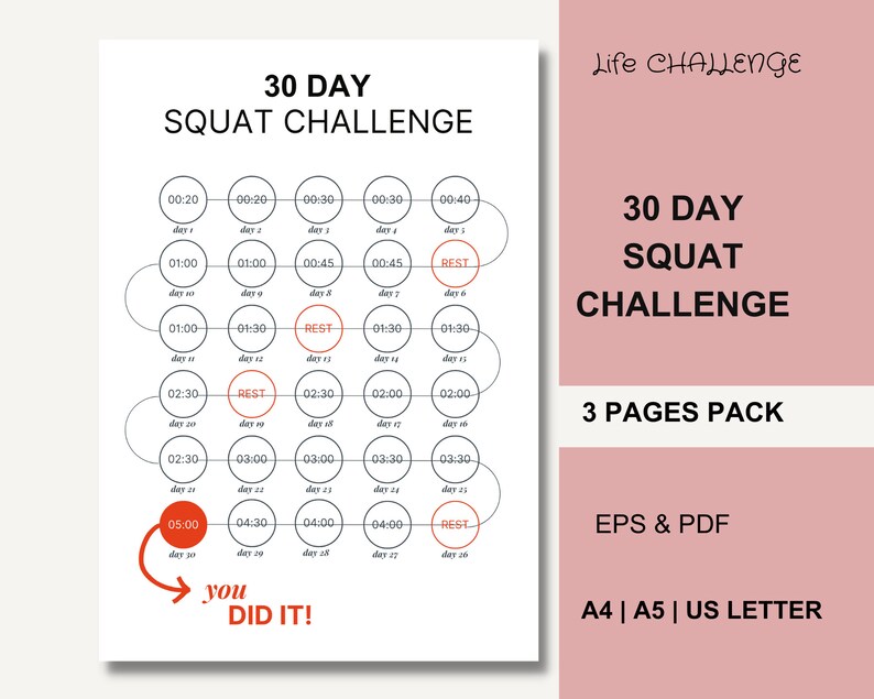 30 Day Squat Challenge Digital Fitness Guide Printable Squat Challenge