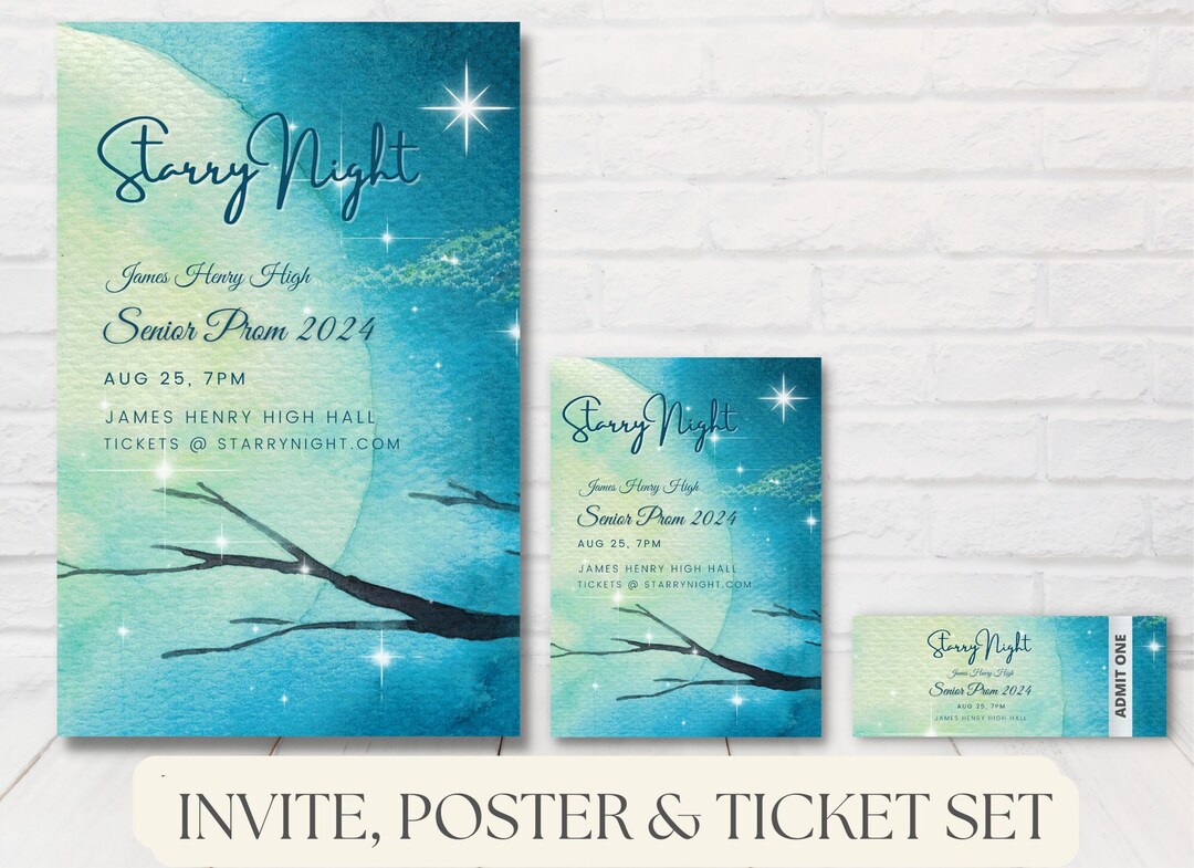 Printable Starry Night Prom Set Under the Stars Prom Invite EDITABLE