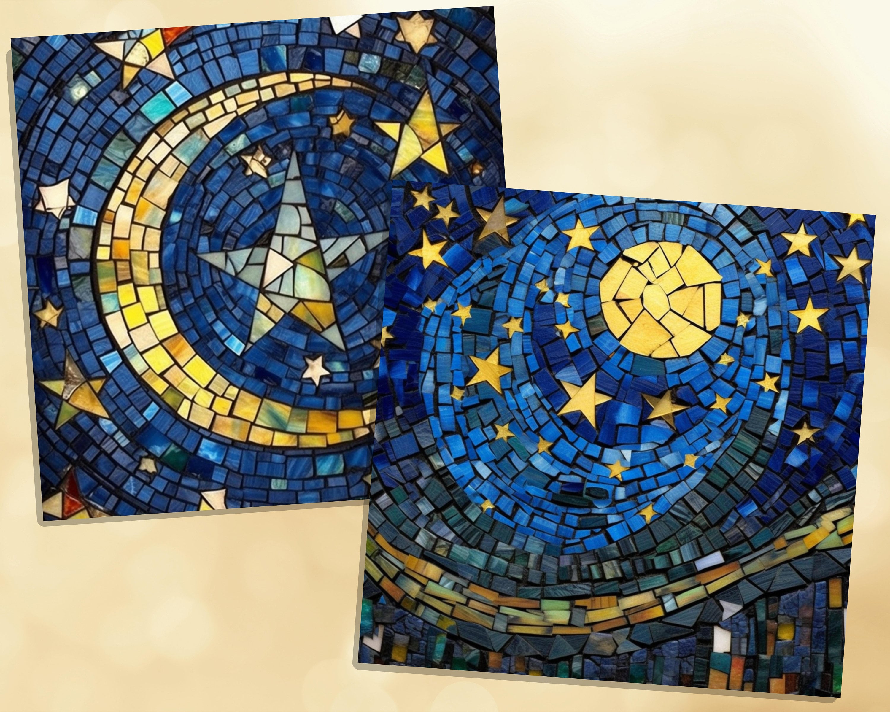 Printable Starry Night Mosaic Digital Papers Stained Glass Pages