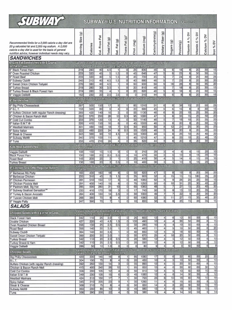 Subway Menu Prices Calories Fresh Menu Prices