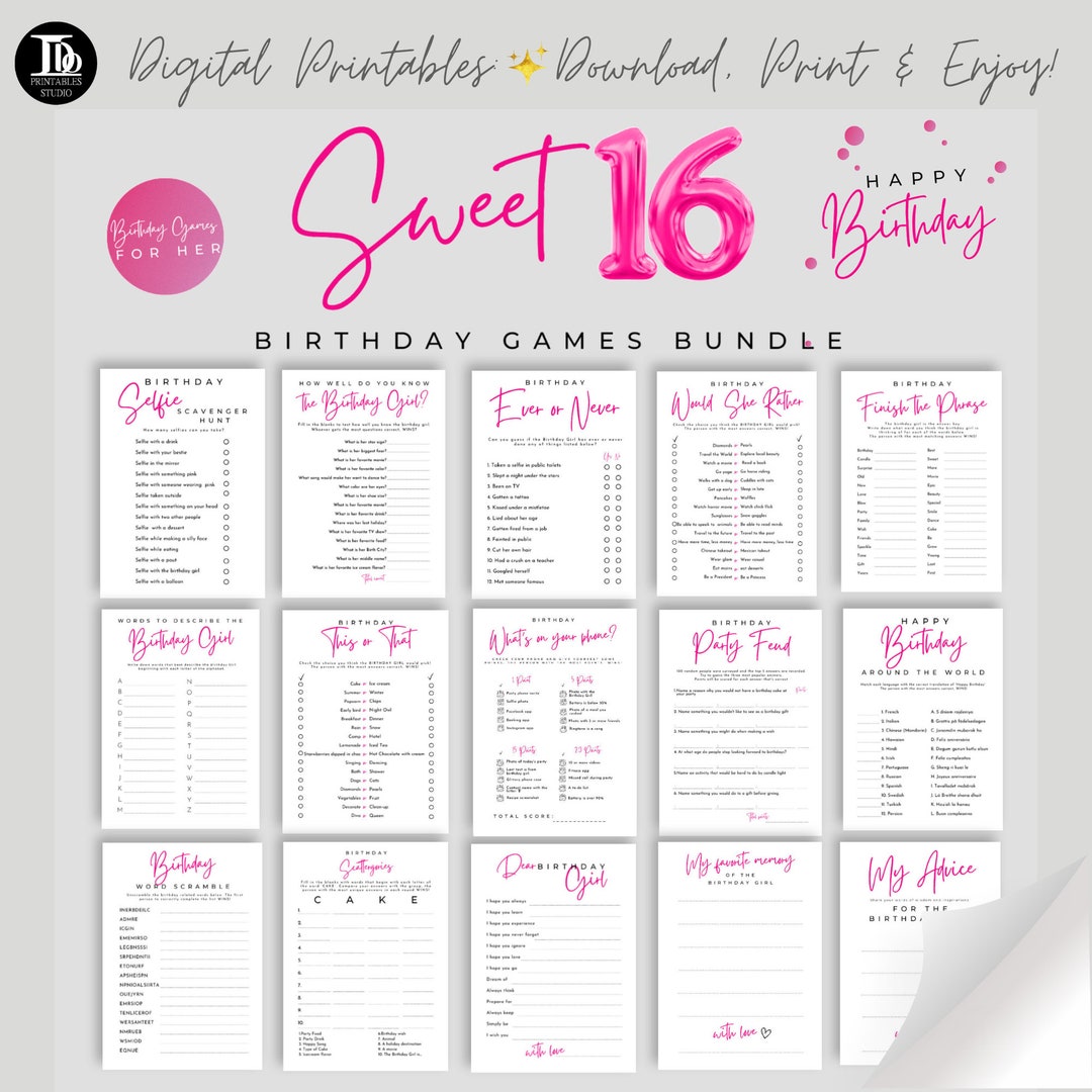 Sweet 16 Games Bundle Printable Sweet 16 Birthday Party Ideas Sweet