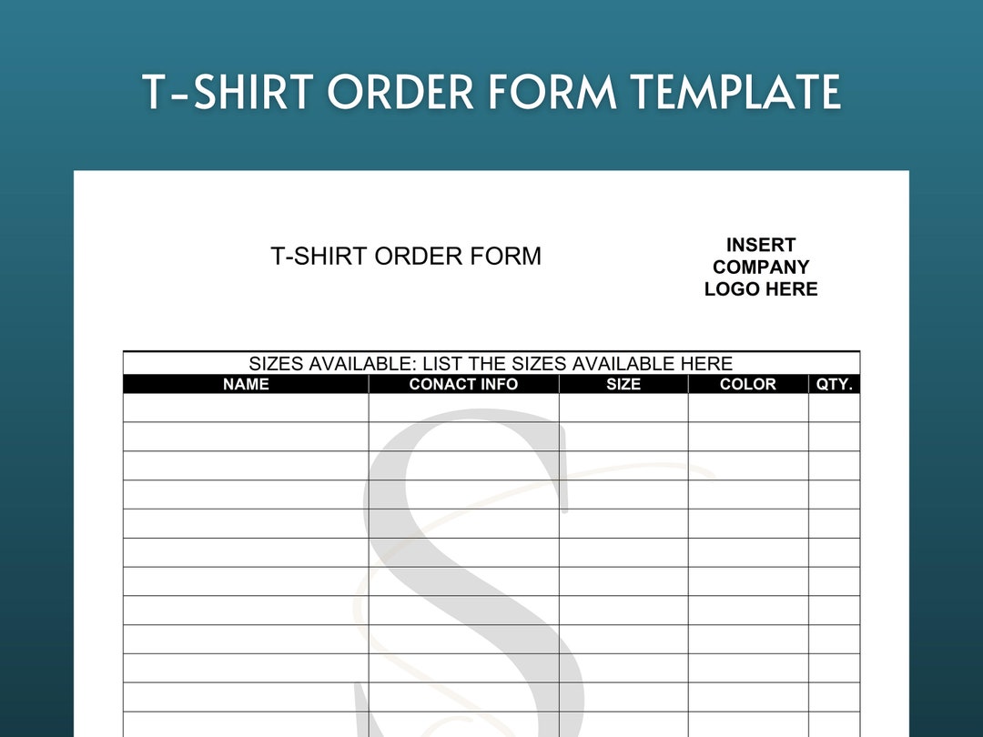 T Shirt Order Form WORD Template Editable and Printable Tshirt