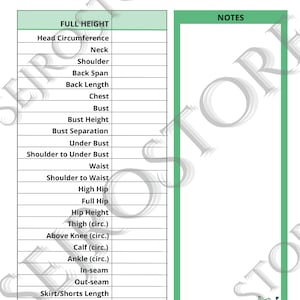 PRINTABLE Women s Body Measurement Sheet / Fashion Designer Template