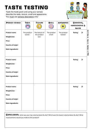 Food Printable Taste Testing Sheet Free Math Worksheet Printable