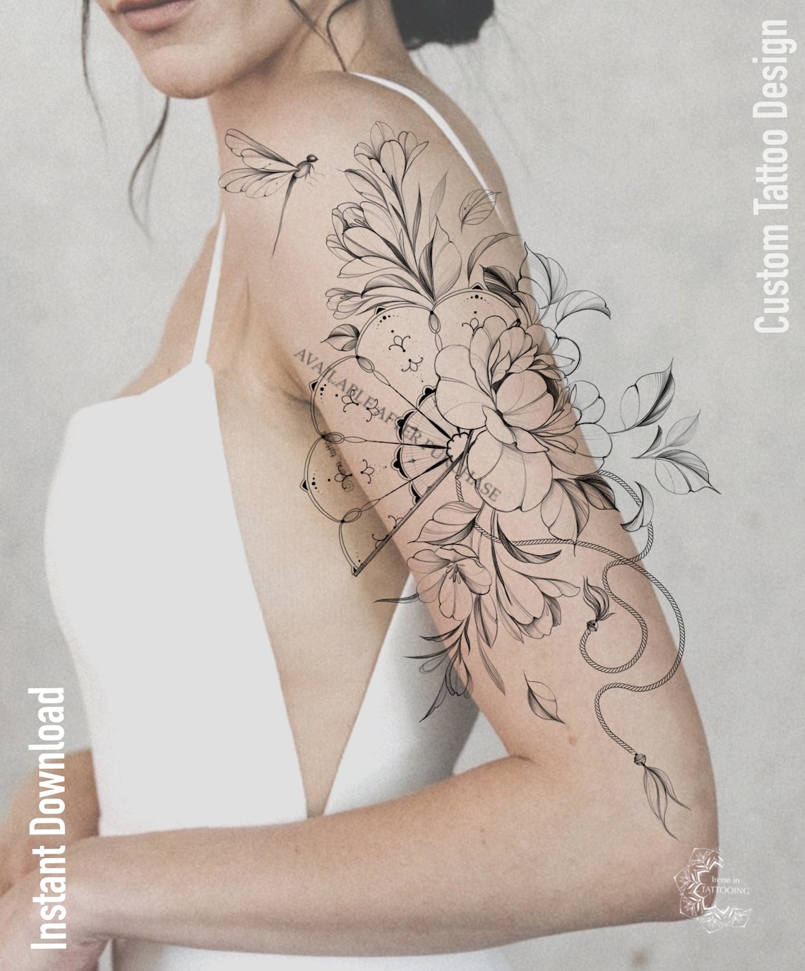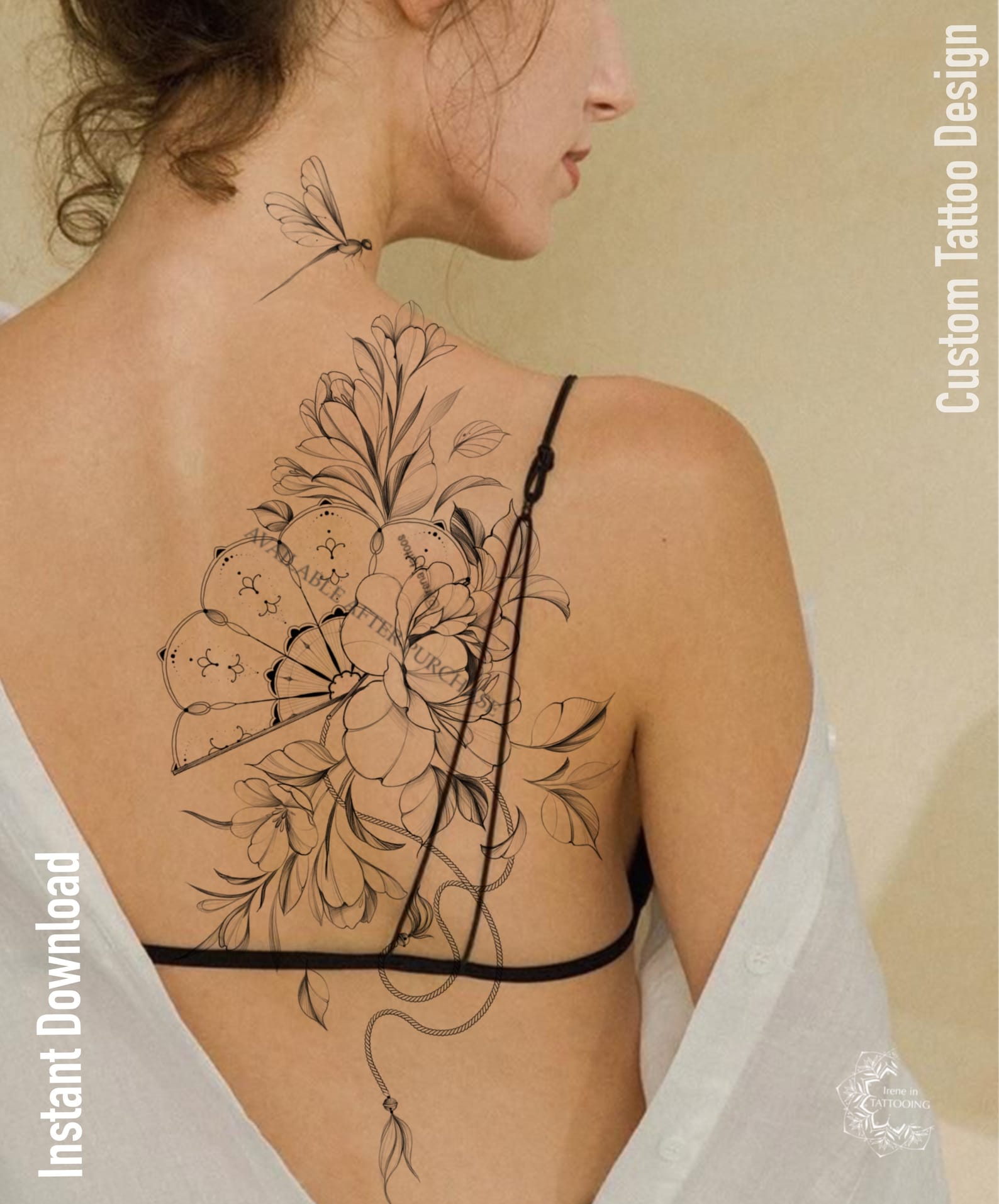 Tattoo Design Printable Stencil Instant Download Flowers With Fan
