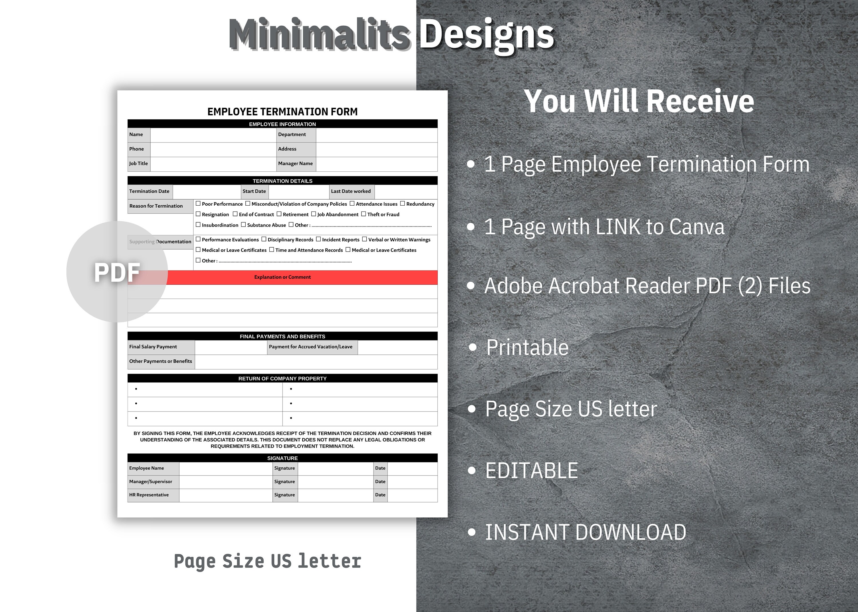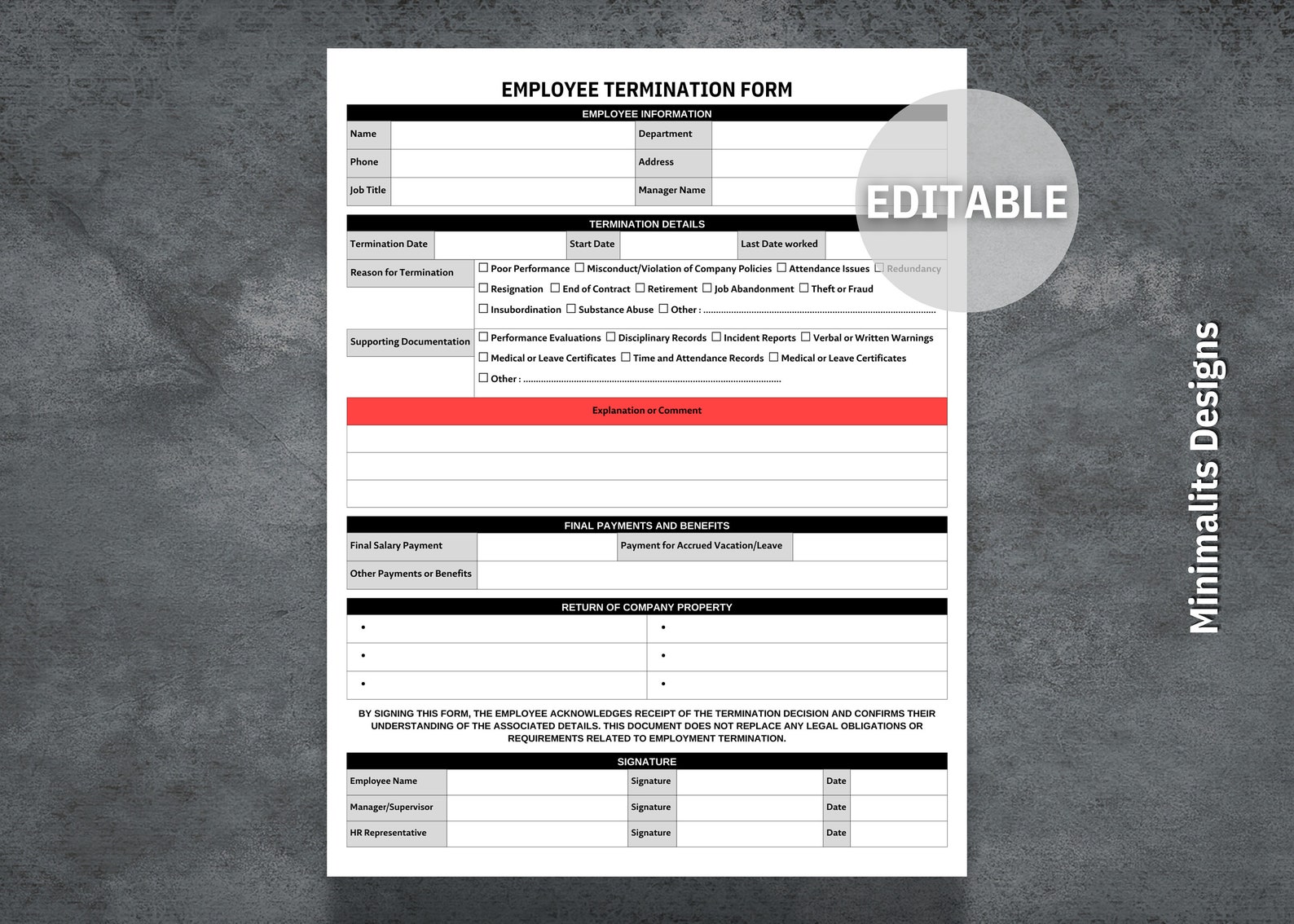 Employee termination form printable employee termination etsy Artofit