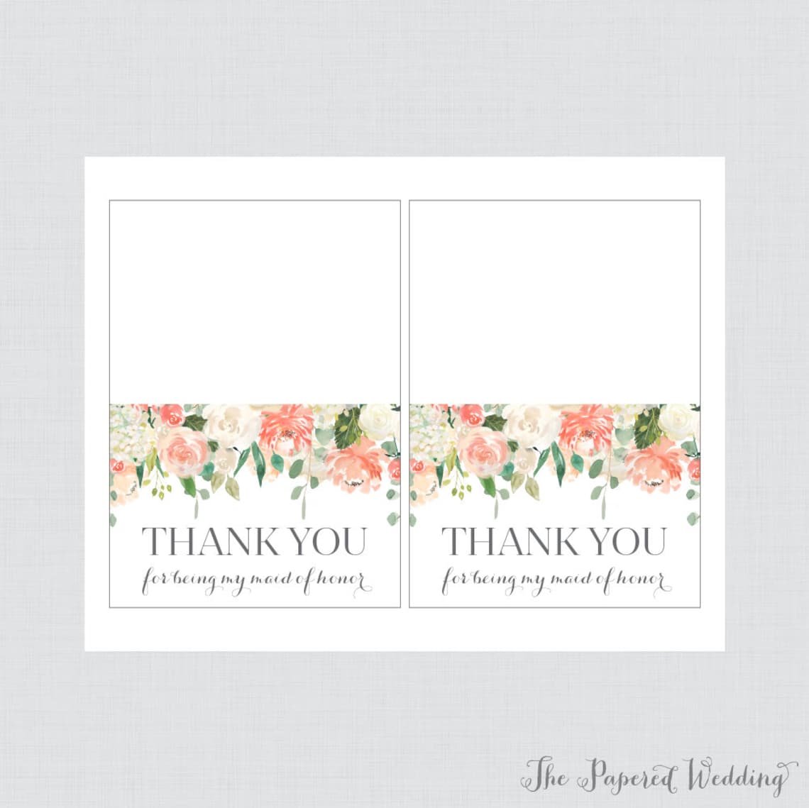 Printable Maid of Honor Thank You Cards Peach Floral Thank Etsy