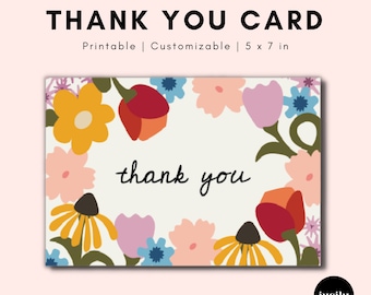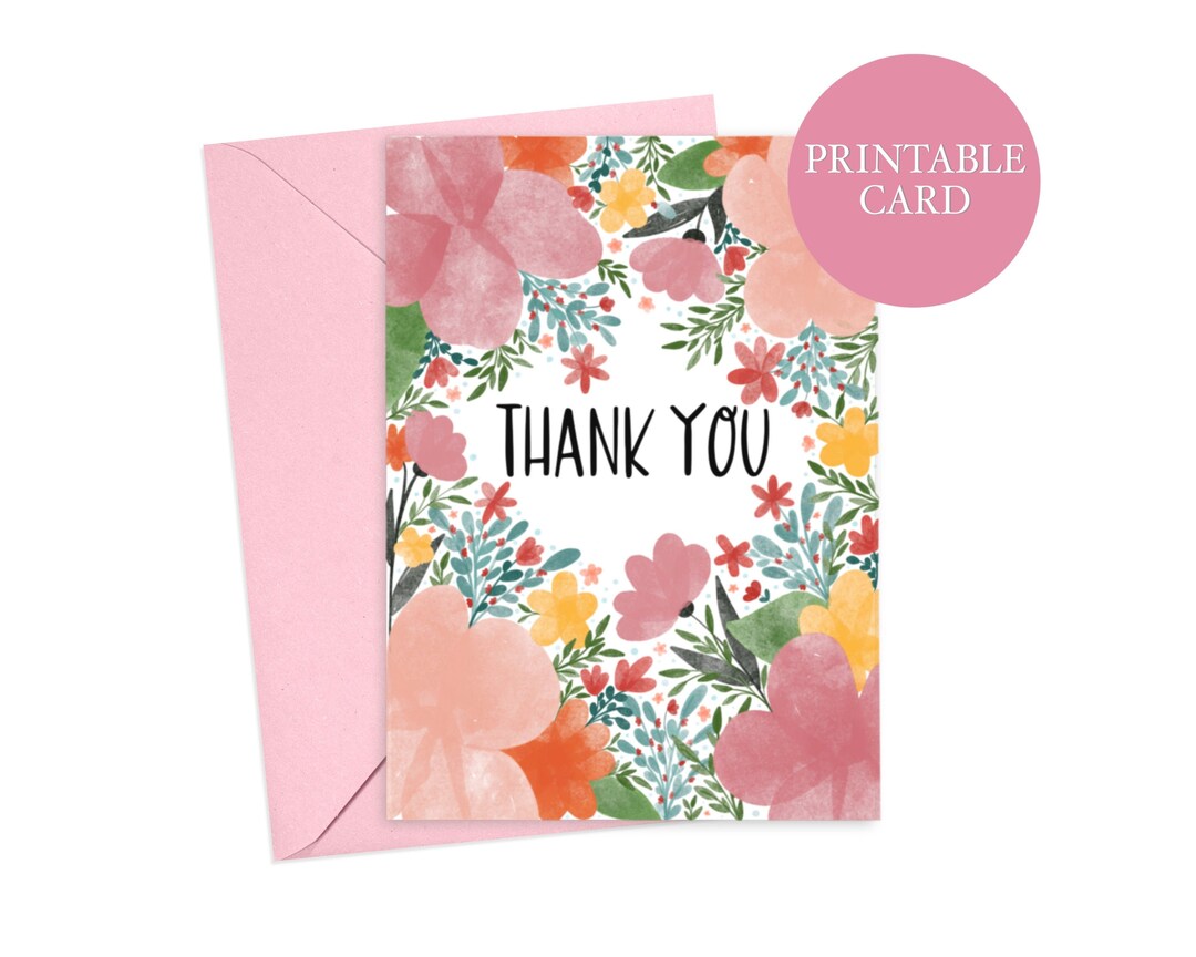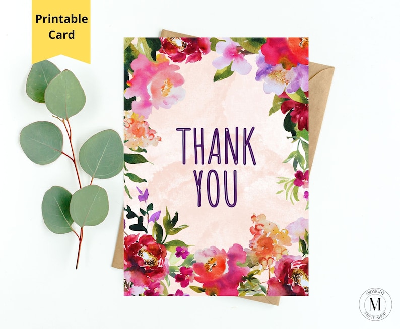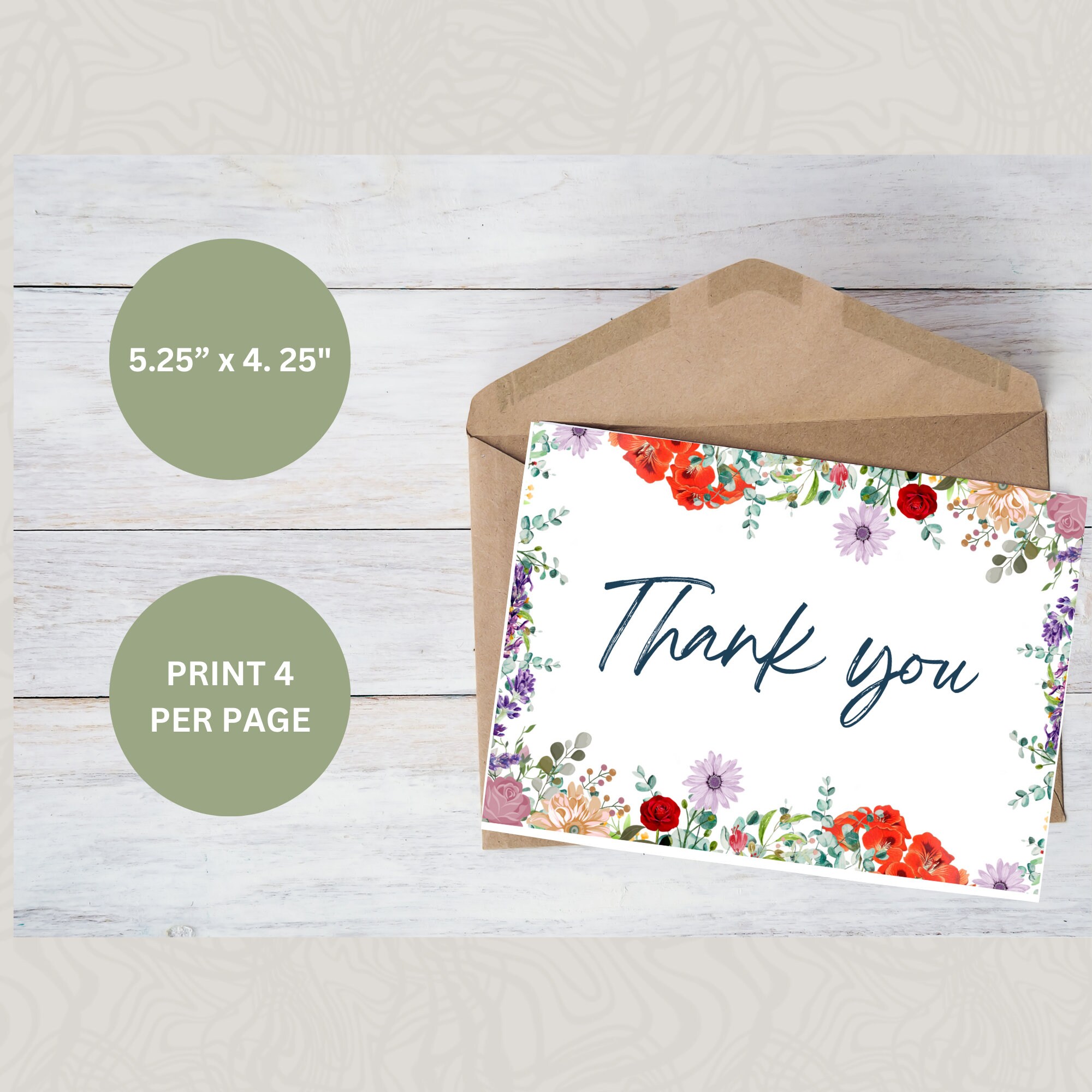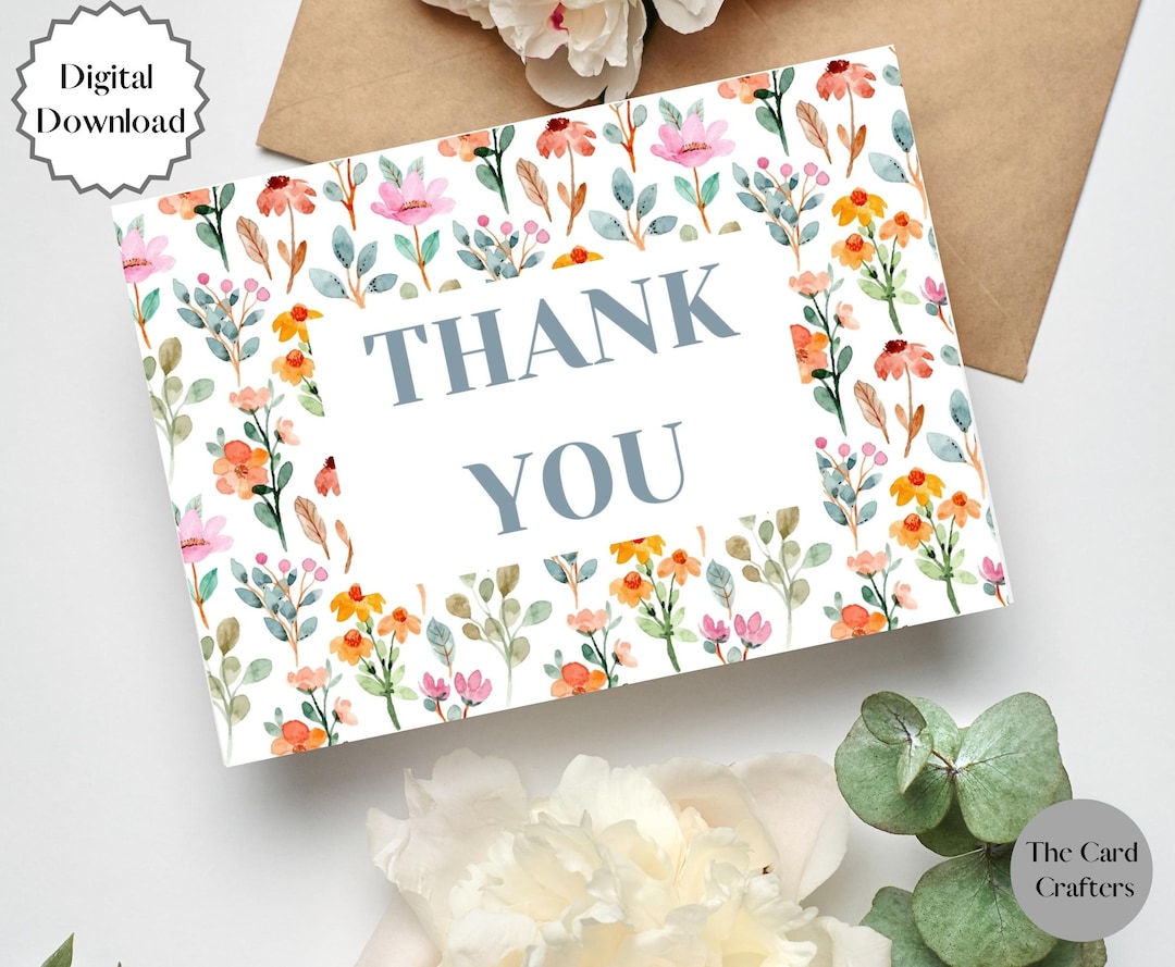 140 PRINTABLE Thank You Card Floral Theme INSTANT DOWNLOAD Etsy