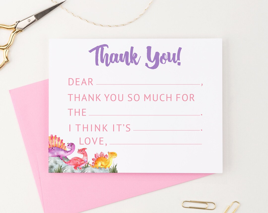 Cute Dinosaur Fill in Thank You Notes for Girls Dino Stationery Set