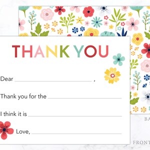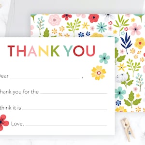 Kids Fill in the blank Thank You Cards Girls Floral Fill in the Blank