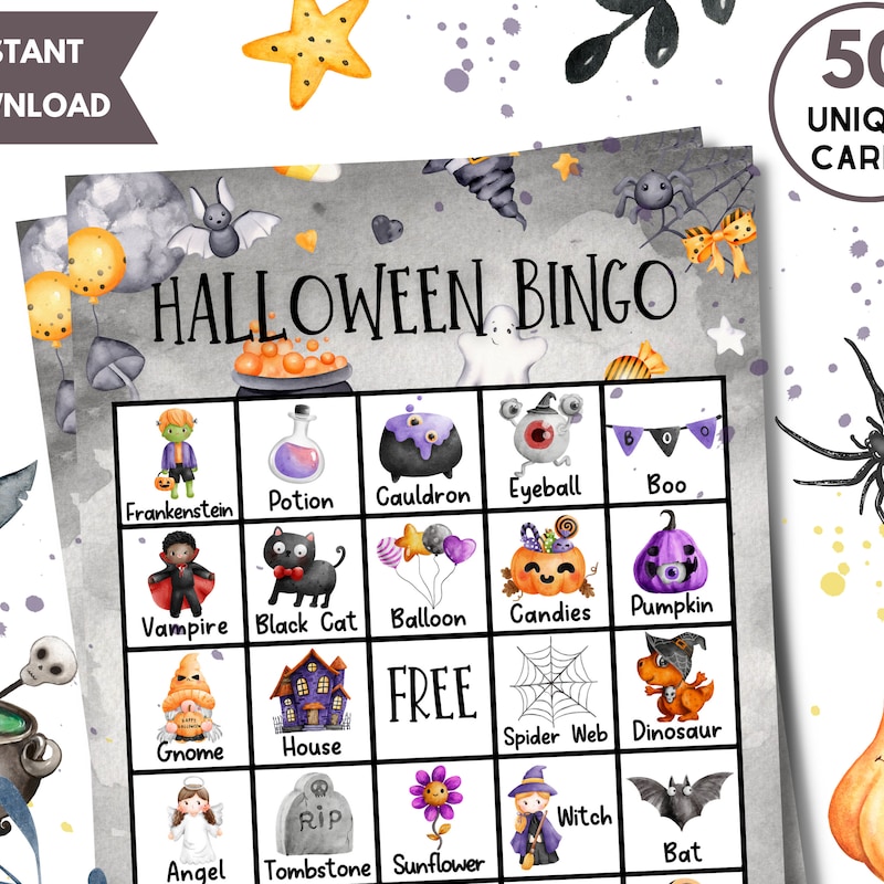 20 Unique Gothic Halloween Bingo Game Printable Cards The Joy of Gifts