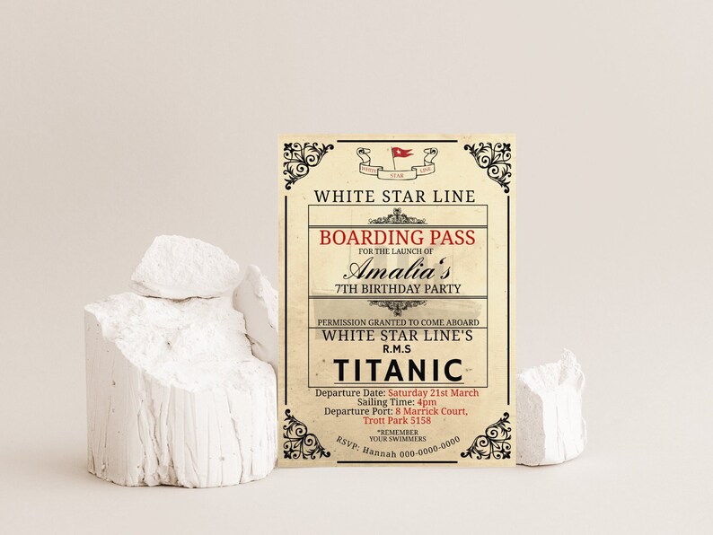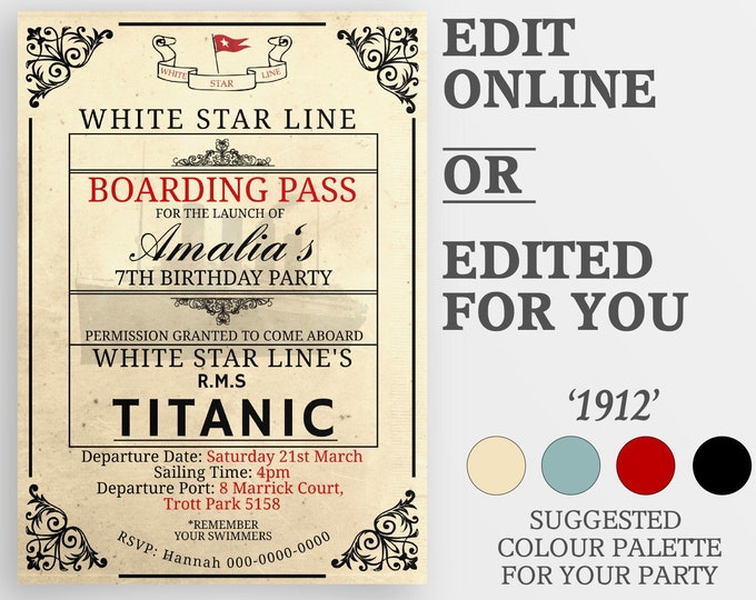 Titanic Boarding Pass Printable Template Editable Wedding Invitation