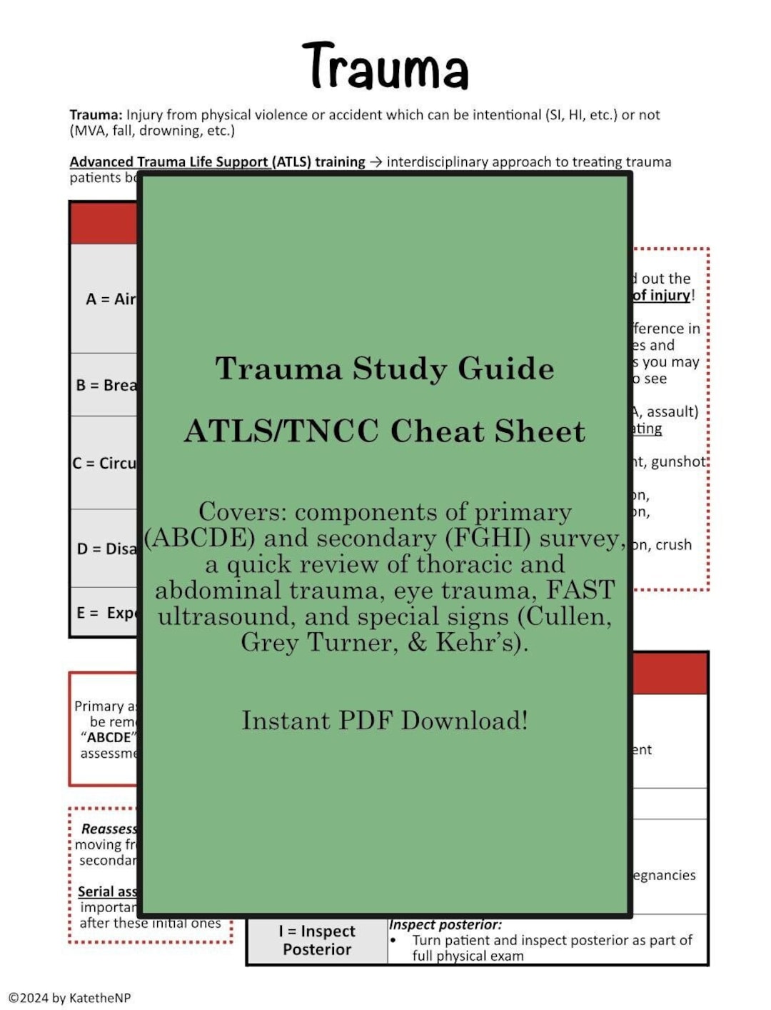 Trauma Study Guide (TNCC and ATLS Cheat Sheet) Etsy