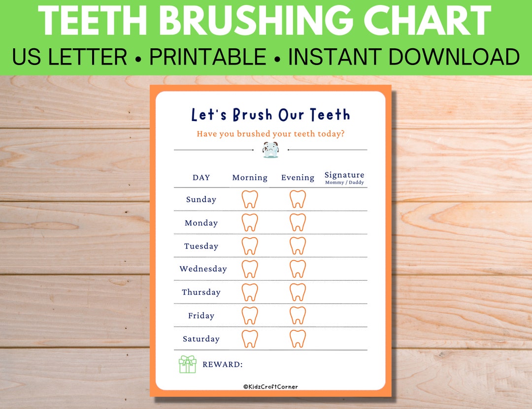 Toothbrush Reward Chart For Kids Kids Printable Routine Etsy Reward