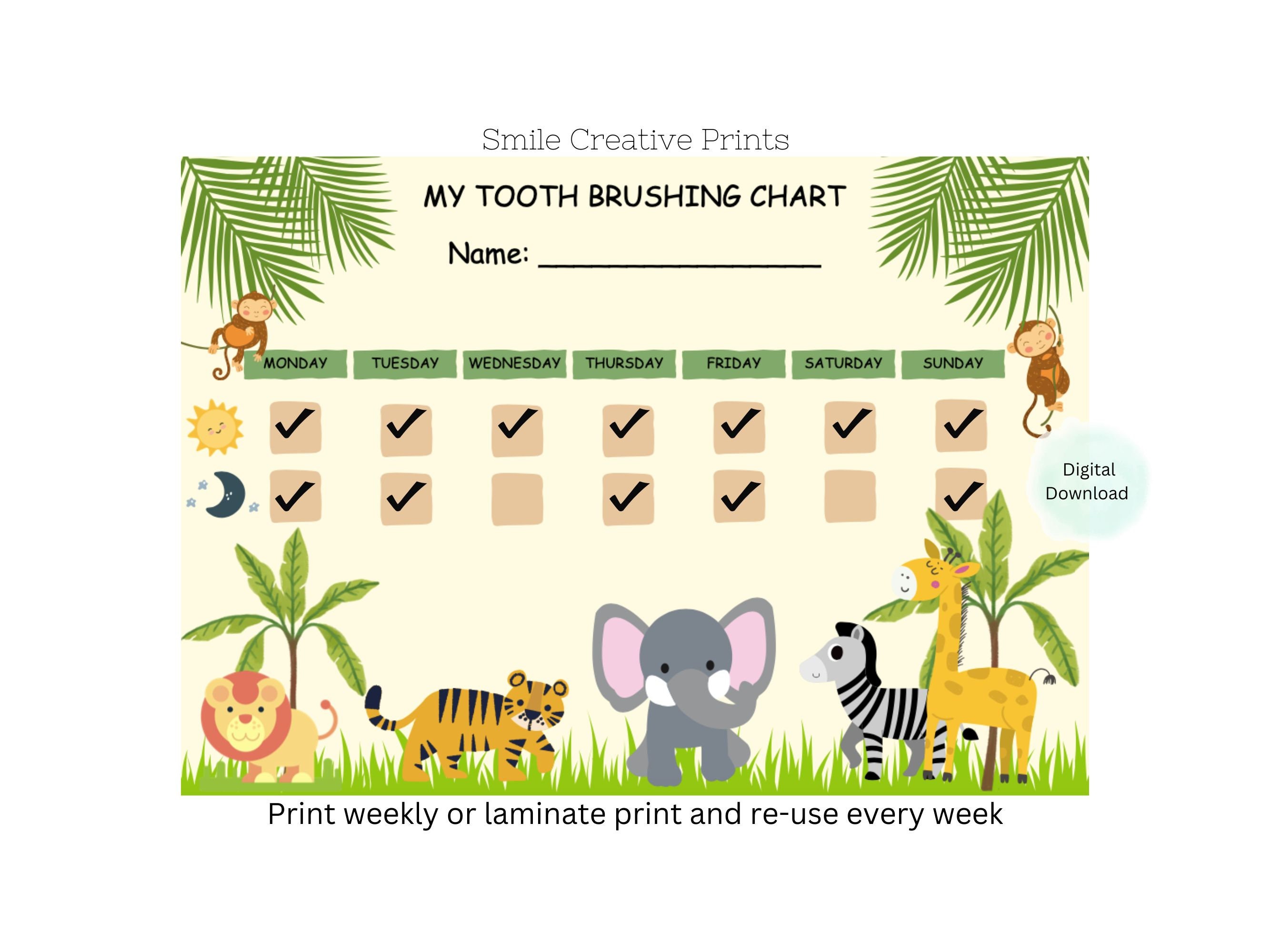 Weekly Kids/toddler Printable Toothbrush Chart Safari Theme INSTANT
