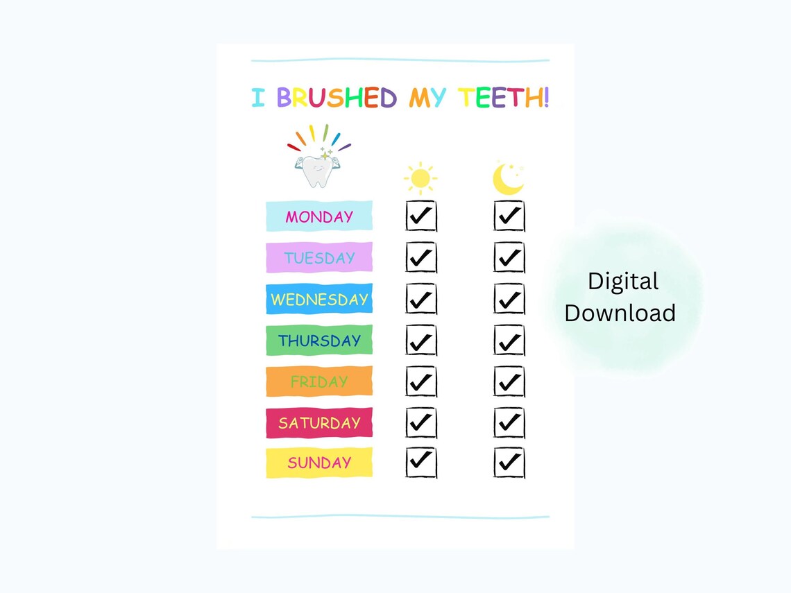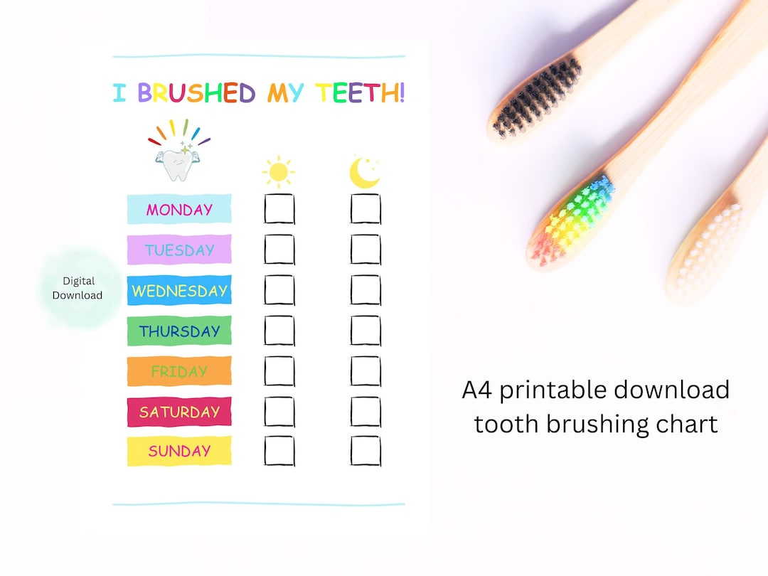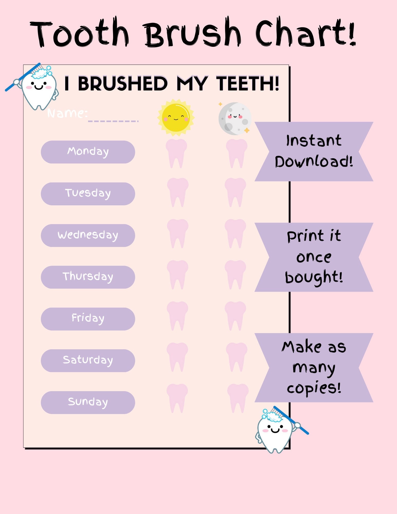 Weekly Kids/toddler Printable Toothbrush Chart INSTANT DOWNLOAD Etsy