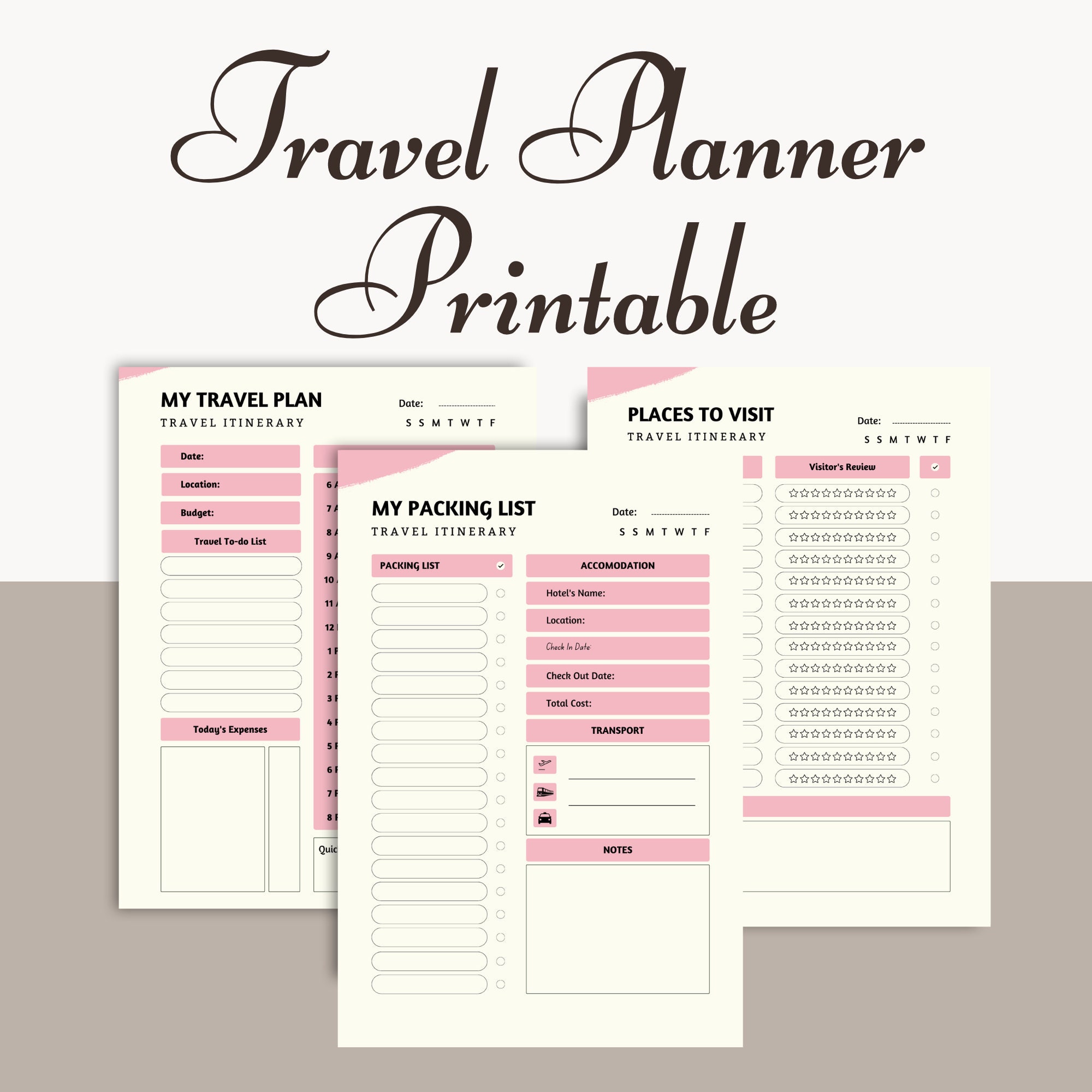 PRINTABLE Travel Planner Template Itinerary Plan for Holiday Trip