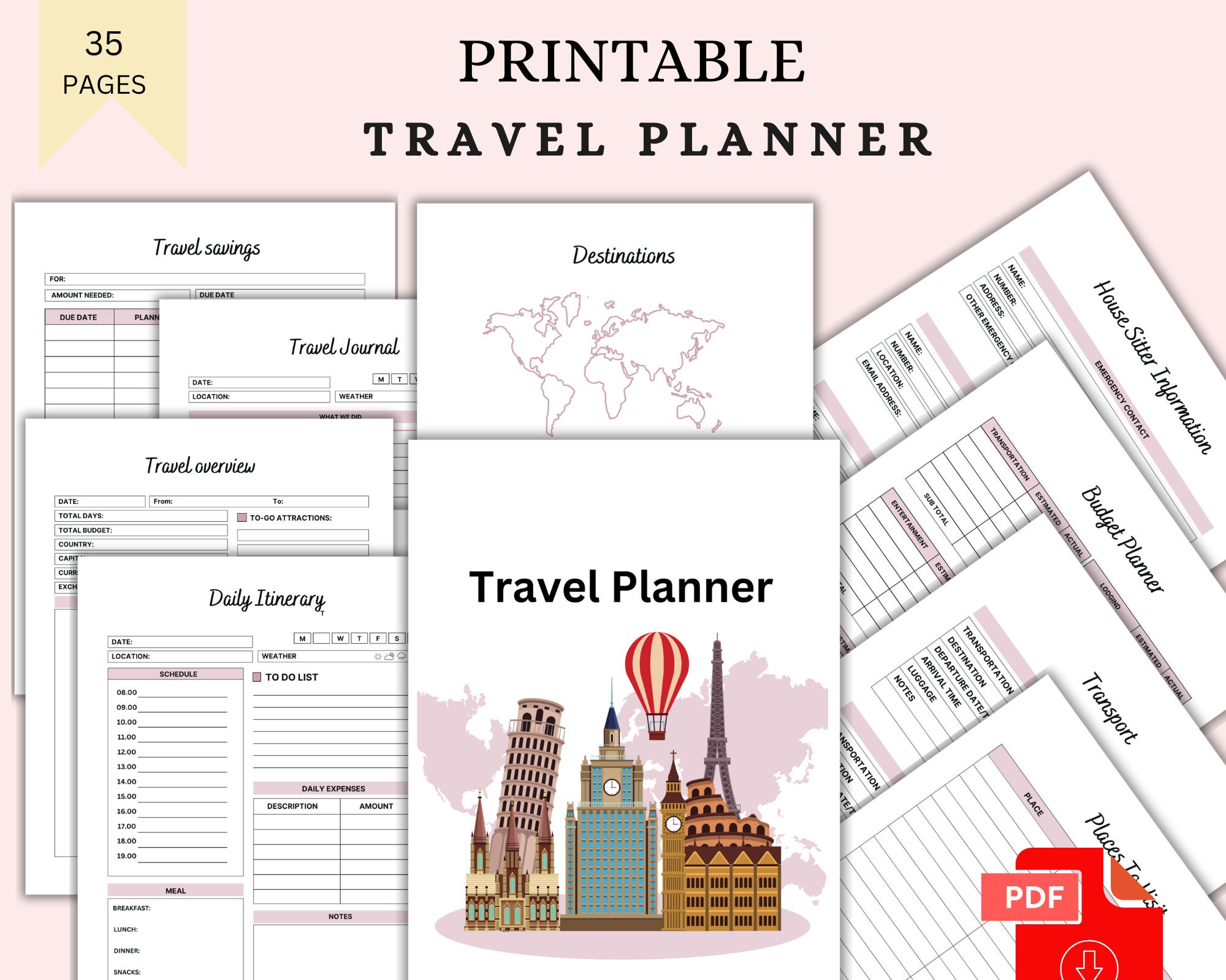 Printable PDF Travel Planner Travel Itinerary Travel Organizer