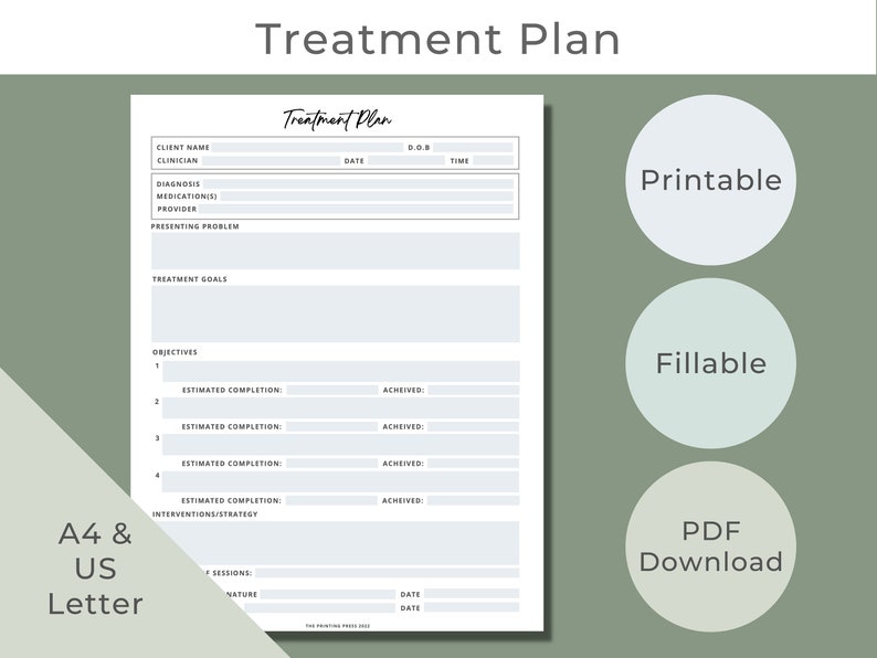 Treatment Plan Template Printable Fillable PDF Therapist Template