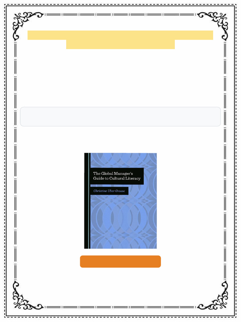 The Global Managers Guide to Cultural Literacy 1st Edition Christine