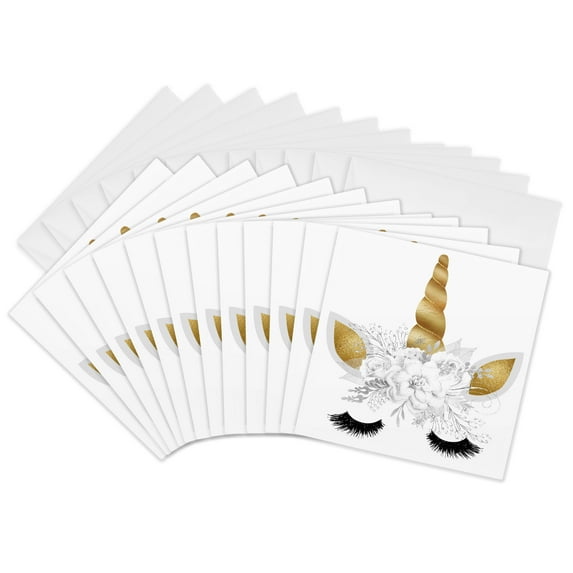 3drose Glam Image of Gold White Floral Unicorn Face 12 Greeting Cards