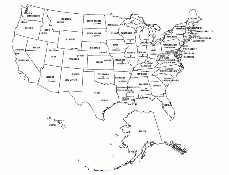 Map Of State Capitals Printable