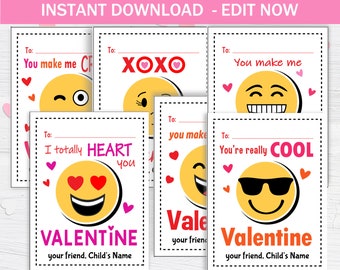 Emoji Themed Printable Valentine #39 s Day Cards Set of 4 Valentine Cards