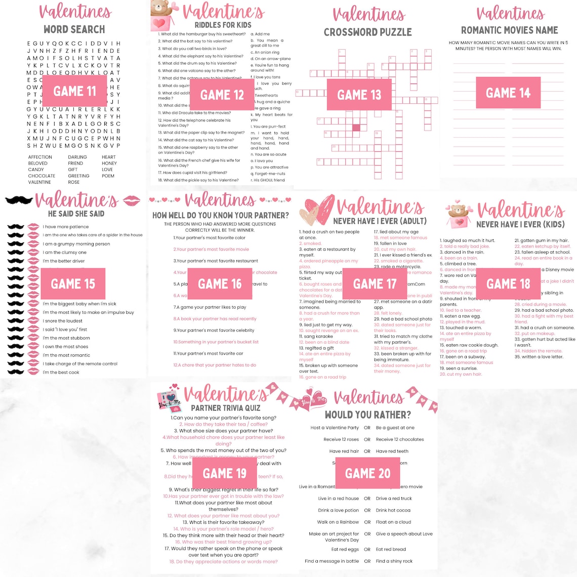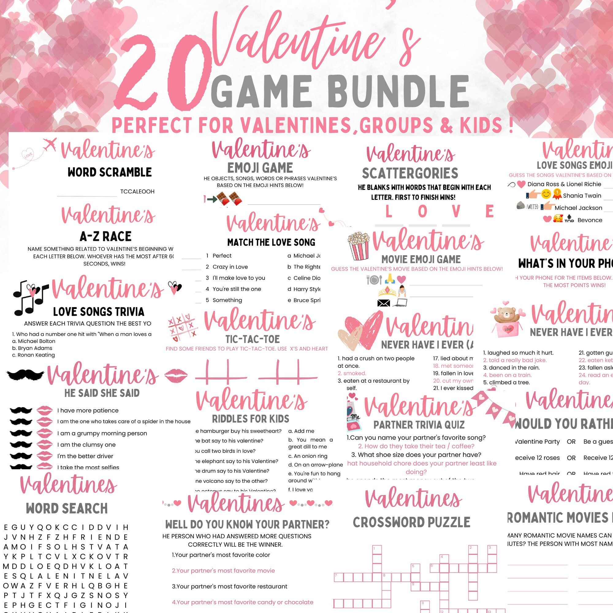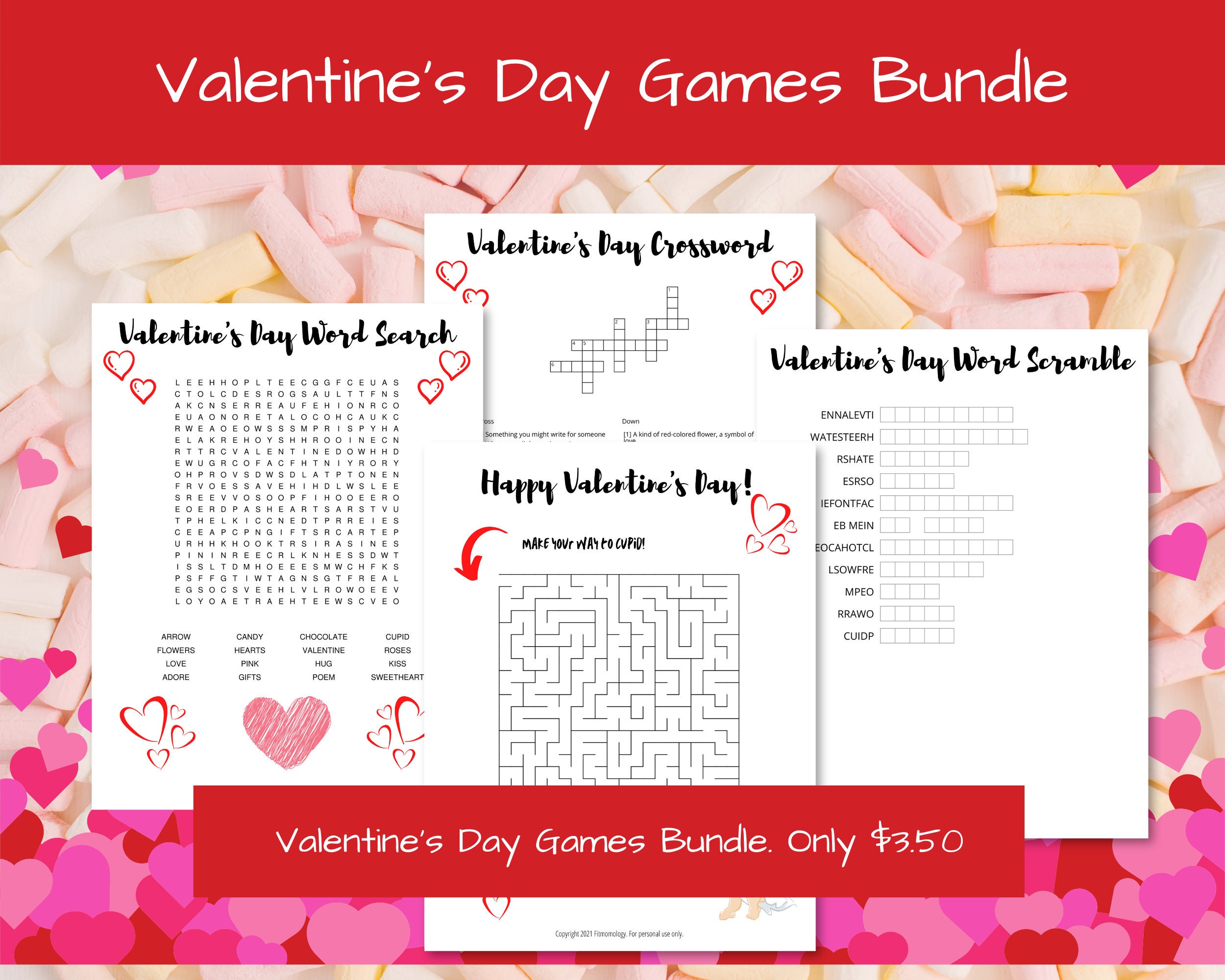 Fun Valentine s Day Printable Games Valentines Games Bundle Valentines