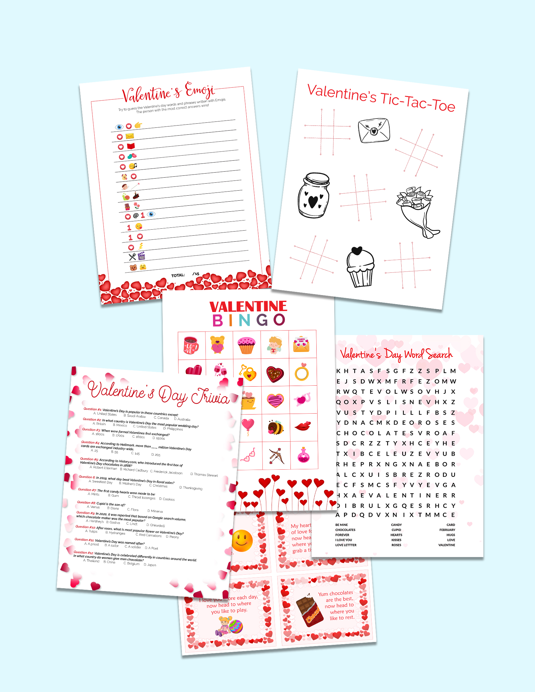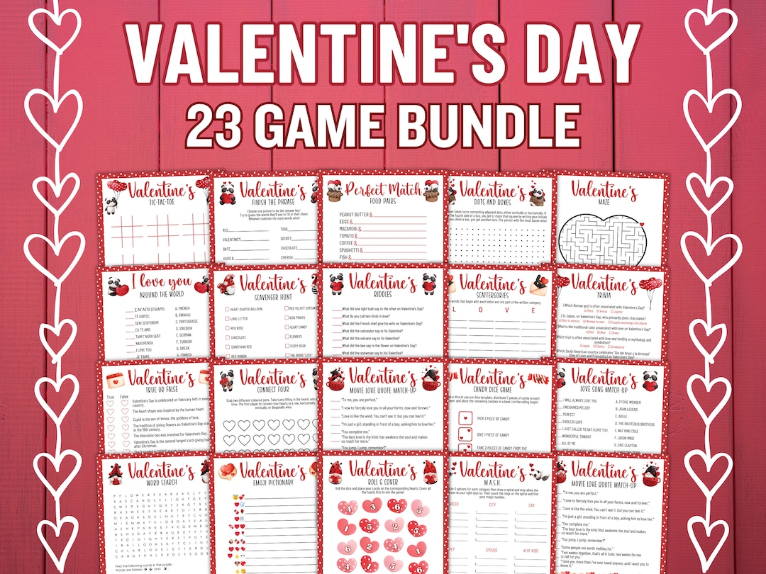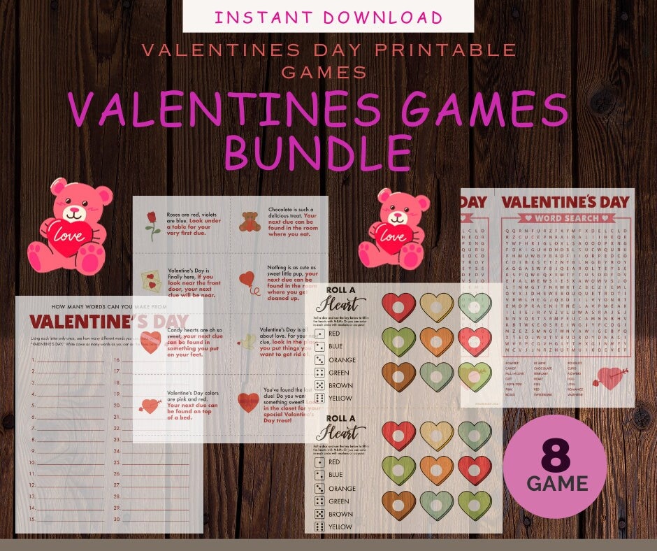 Fun Valentine s Day Printable Games Valentines Games Bundle Valentines
