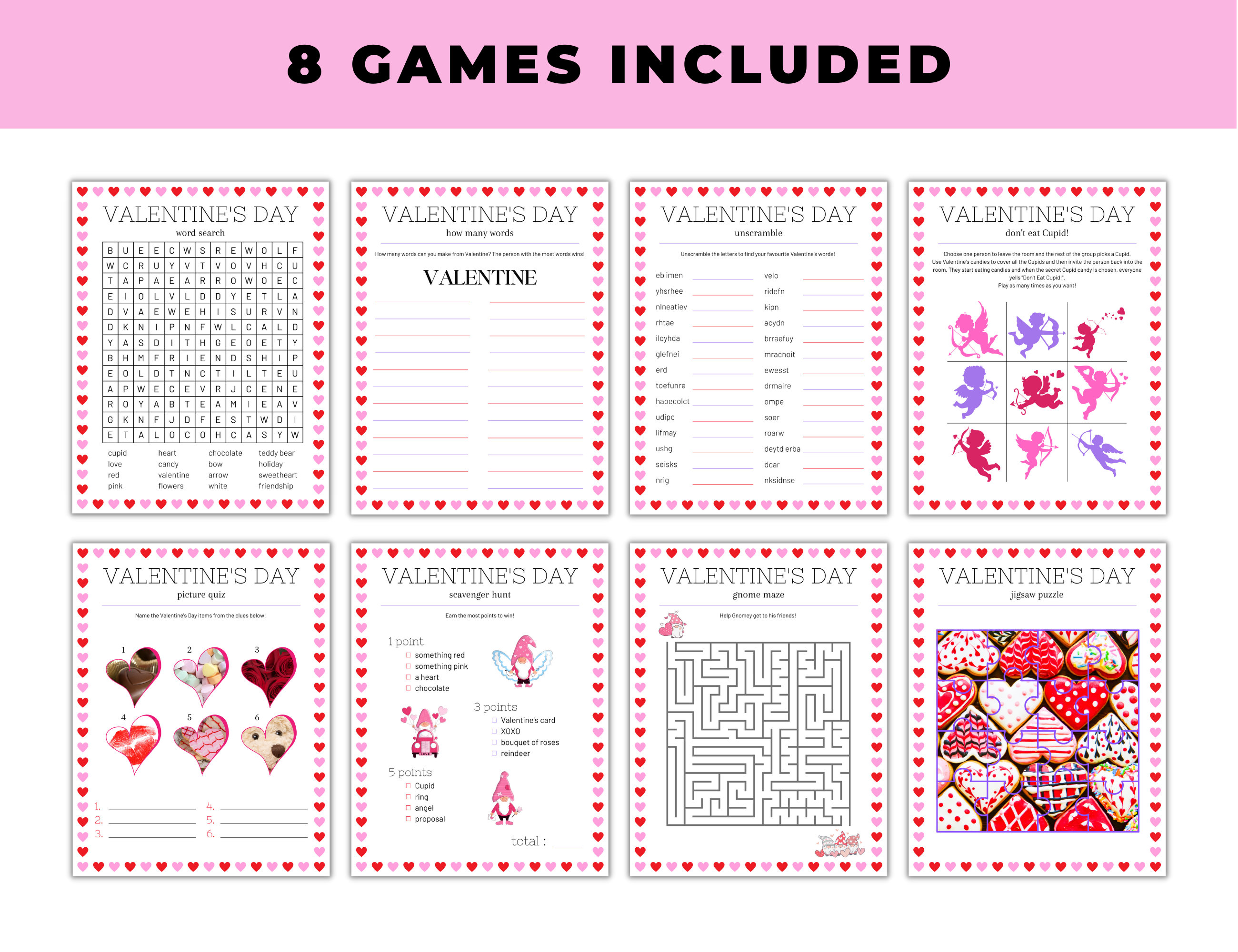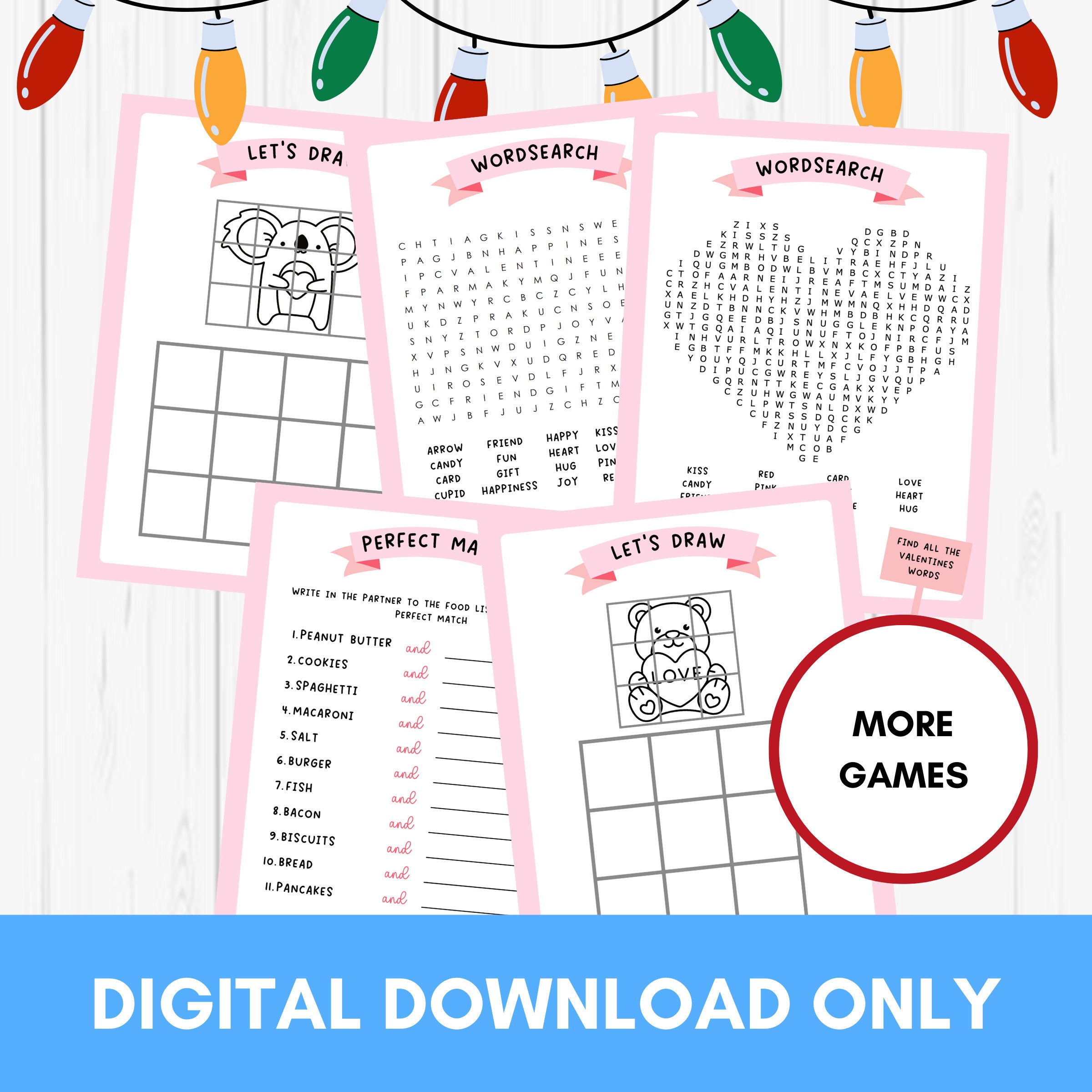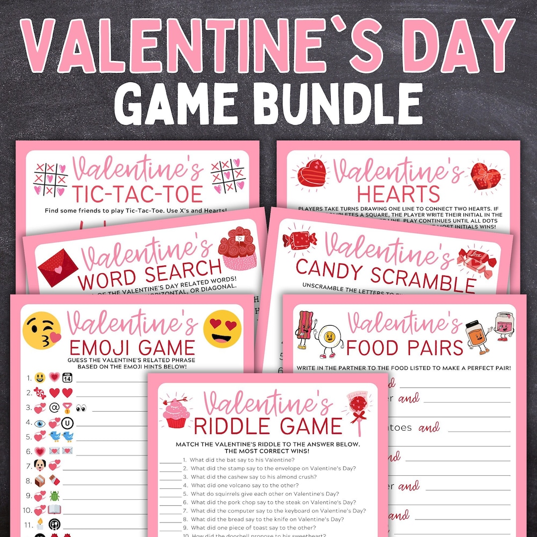Valentine s Day Games Bundle Printable Valentines Games Kids