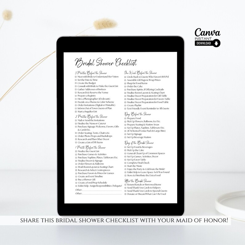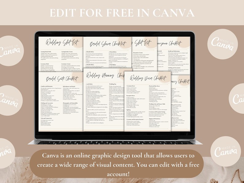 Editable Wedding Checklist Templates: 12 page Printable Planner (canva